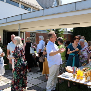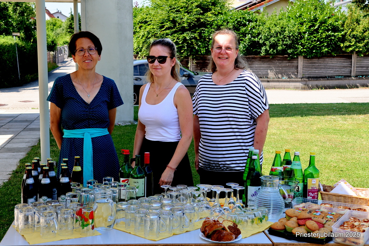 Am 29. Juni fand im Rahmen des Sonntagsgottesdienstes die Feier zweier besonderer Priesterjubiläen statt. Pater Alfred Haidler, derzeit auf Heimaturlaub, beging sein 50-jähriges Jubiläum, während Erwin Andlinger sein 65-jähriges Priesterjubiläum feierte. Im Anschluss an die Messe gab es vor der Kirche eine kleine Agape. Bei Gebäck, Brot, Kuchen und Getränken hatten alle Anwesenden die Möglichkeit, mit den Jubilaren anzustoßen und sich auszutauschen.