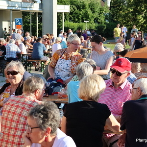 Am Samstag, dem 28. Juni, wurde unser alljährliches Pfarrgemeindefest gefeiert. Der Festgottesdienst begann um 16.00 Uhr, gefolgt von der offiziellen Eröffnung des Festes durch Herrn Pfarrer Franz Asen um 17.00 Uhr. Bei herrlichem Sonnenschein konnten sich die Besucher mit gegrillter Wurst, Leberkäse von der Firma Schnabler oder Gemüsespießen stärken und sich mit gekühlten Getränken erfrischen. Das umfangreiche Kuchenbuffet mit einer Tasse Kaffee rundete den Nachmittag perfekt ab.