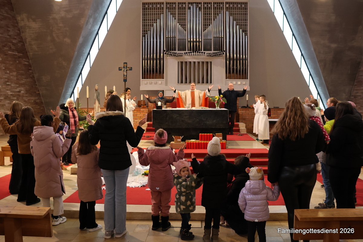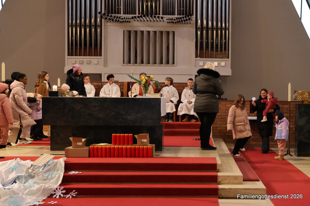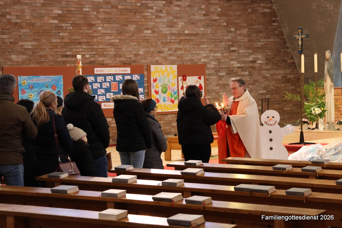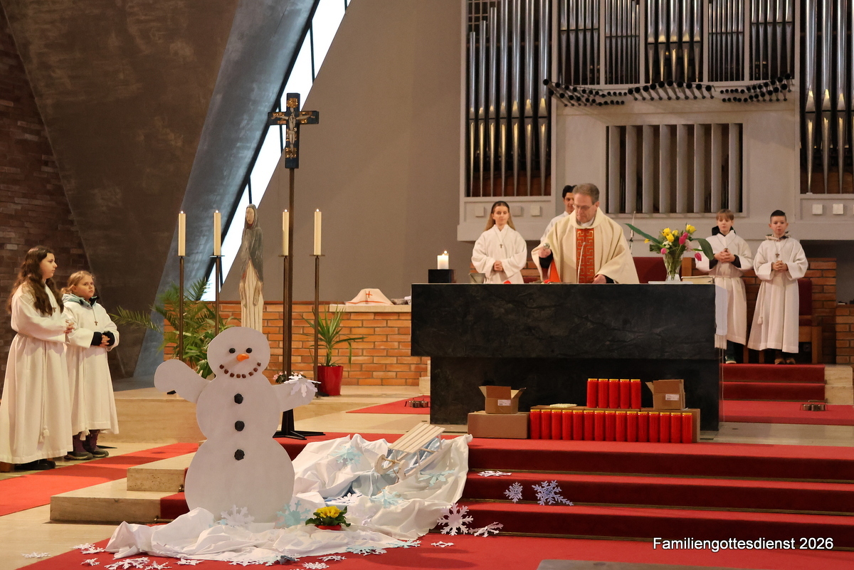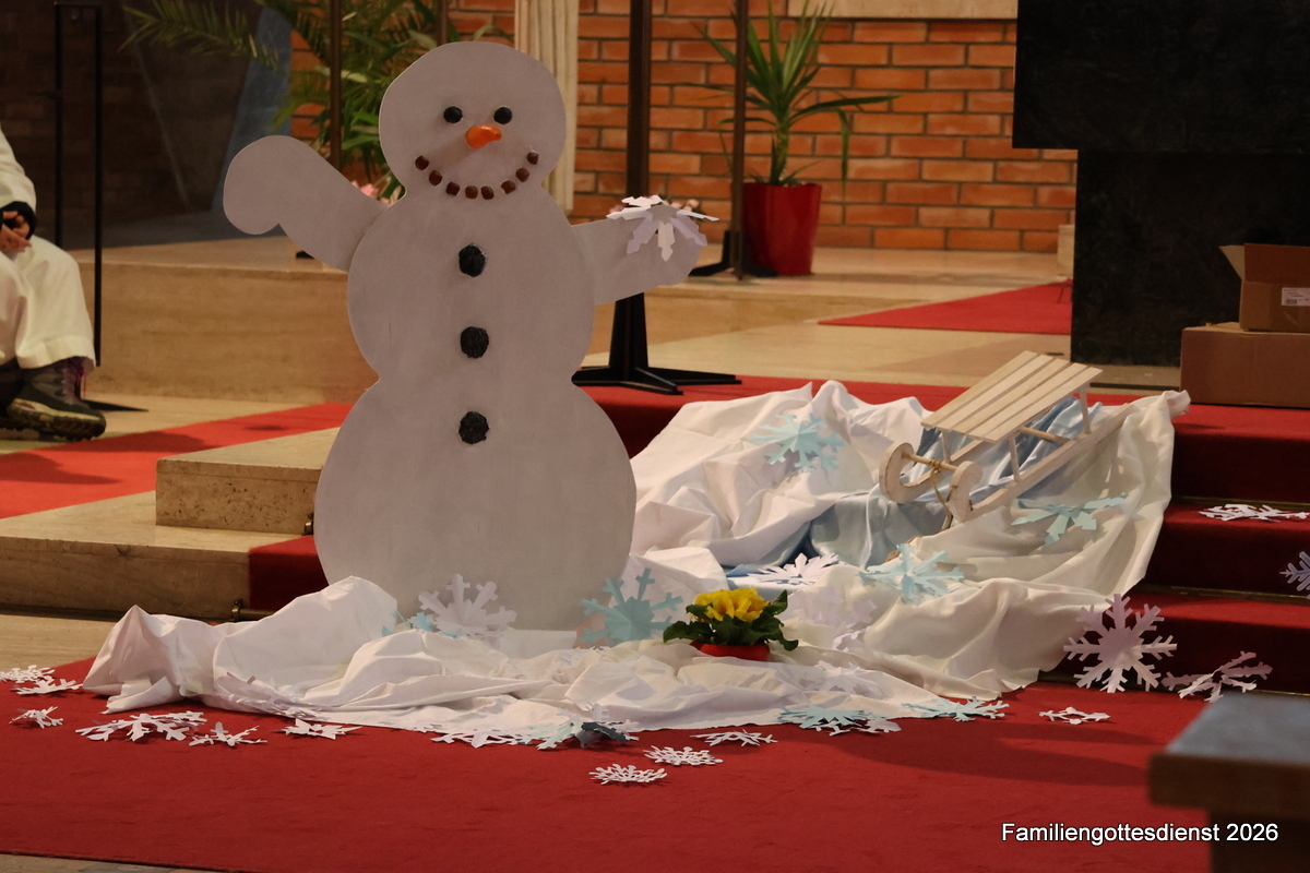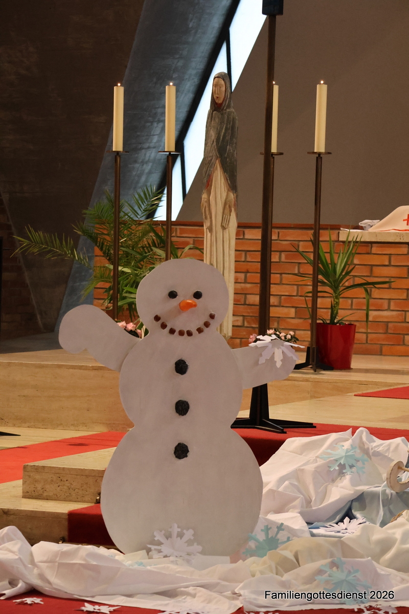 Am Sonntag, den 1. Februar, wurde der Gottesdienst als Familiengottesdienst gestaltet. Im Altarraum empfing die Messbesucher ein wunderschöner Schneemann inmitten einer Winterlandschaft. Mithilfe der Geschichte der Schneeflocke „NIX“ (Lateinisch nix = Schnee) konnten die Kinder erfahren, dass Gott uns alle in unserer Einmaligkeit und Einzigartigkeit liebt.