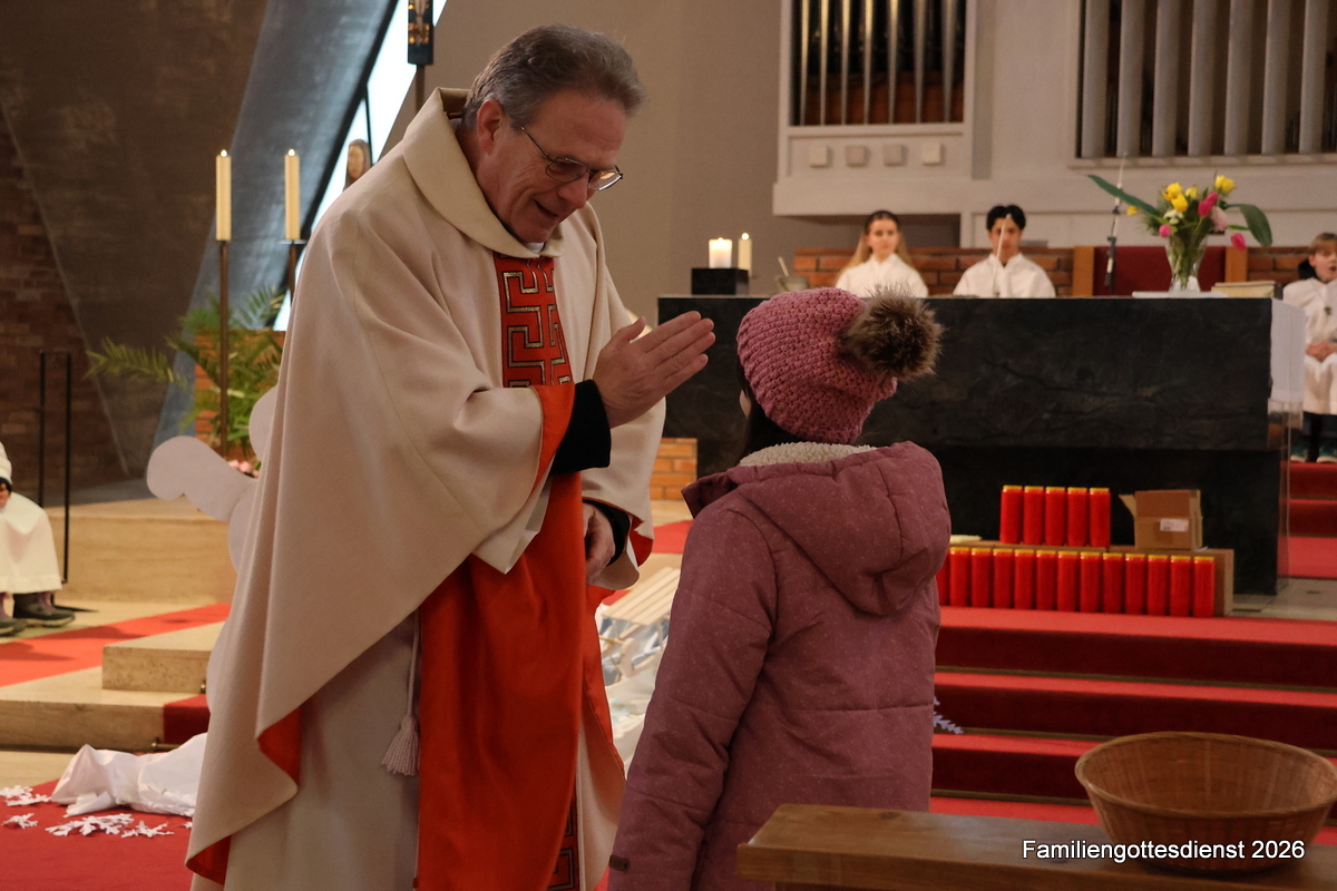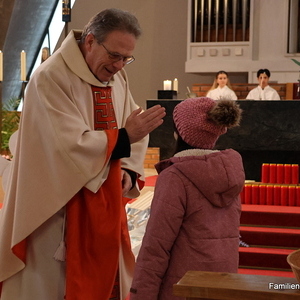 Nach der Predigt folgte die Kindersegnung. Vom Baby im Arm der Eltern bis hin zu den Jugendlichen wurden alle einzeln von Pfarrer Asen gesegnet. Zudem wurden die gespendeten Kerzen für die Kirche sowie die mitgebrachten privaten Kerzen gesegnet. Am Ende des Gottesdienstes hatten alle die Möglichkeit, den Blasiussegen zu empfangen.