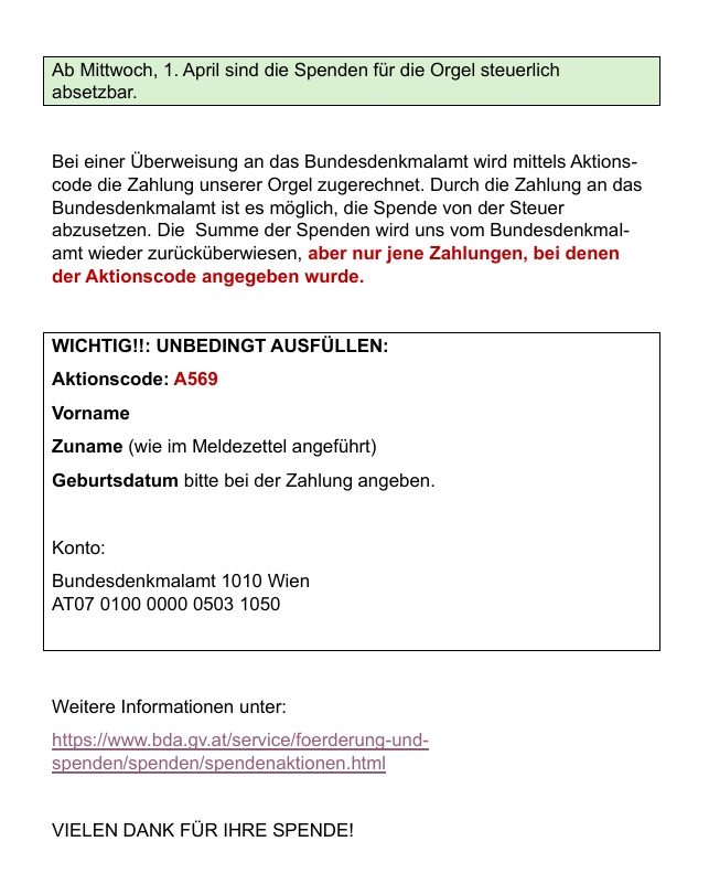 Spenden für Orgel von der Steuer absetzbar