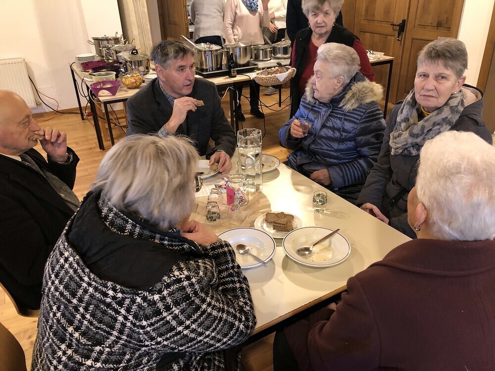 Viele nutzten die Gelegenheit, "Suppe im Glas" mit nach Hause zu nehmen und noch mehr folgten unserer Einladung, die Suppe gemeinsam im Pfarrsaal zu essen.