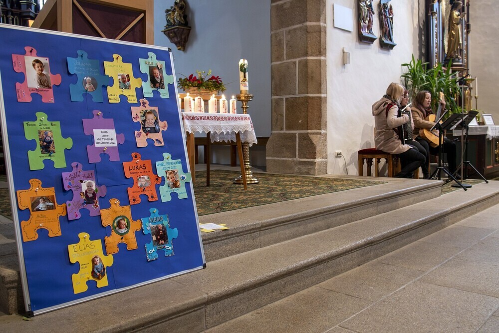 Für jeden der Täuflinge wurde von den Familien ein Puzzleteil gestaltet.