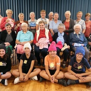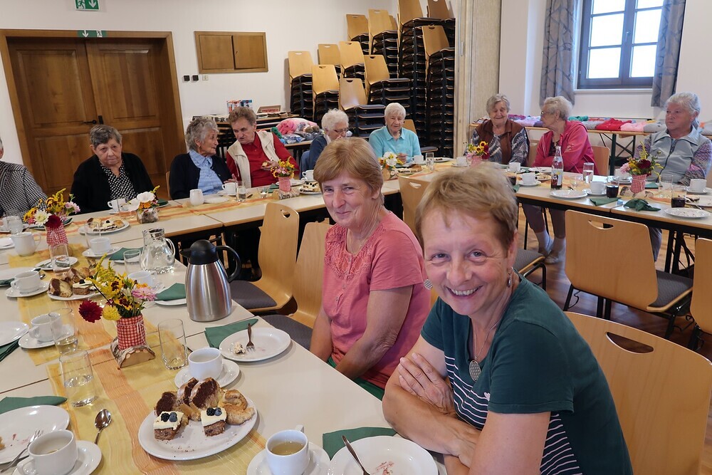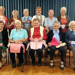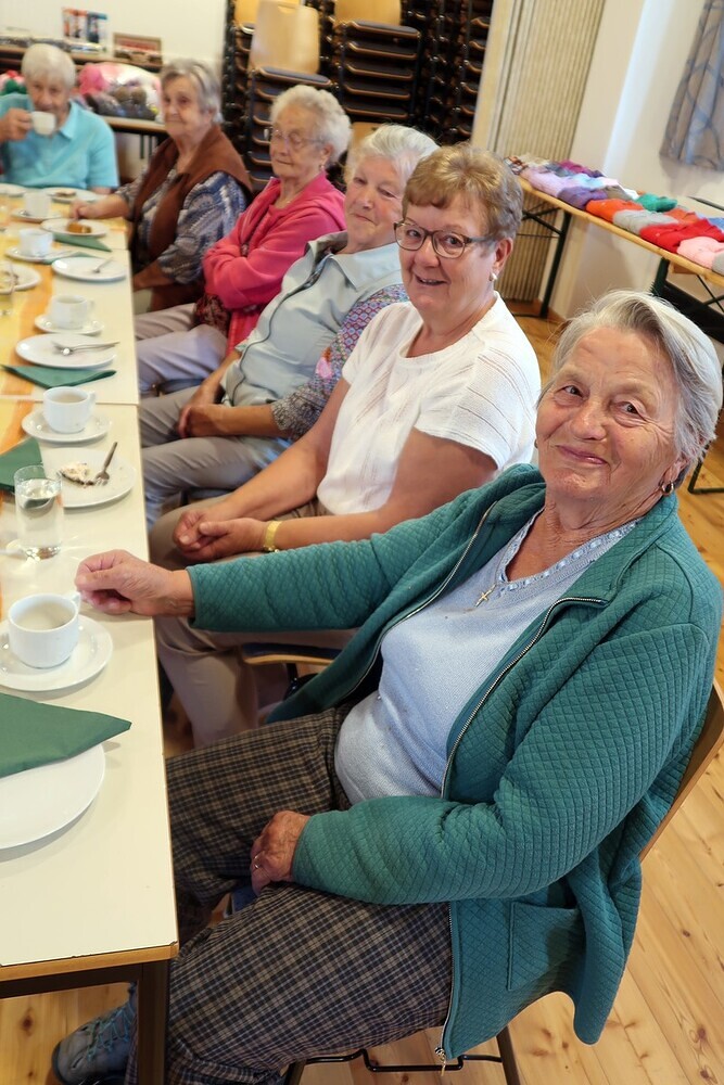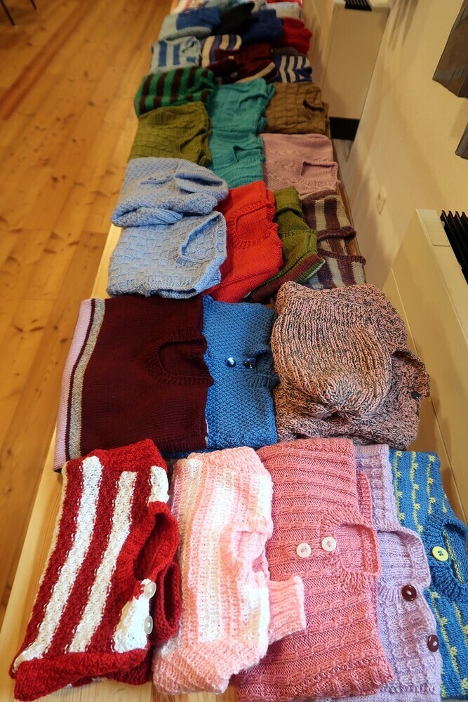 Bis zum 10. September 2023 sind die Stricksachen im Pfarrsaal ausgestellt.