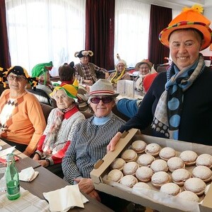 ... um dann mit einem von der Pfarre gesponserten Faschingskrapfen belohnt zu werden.