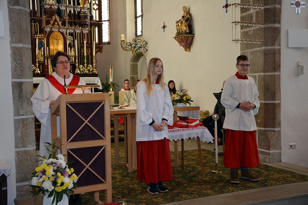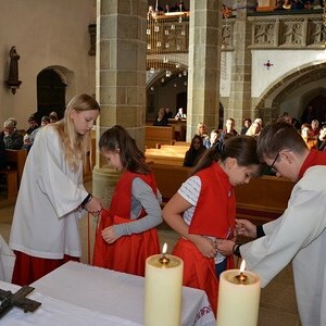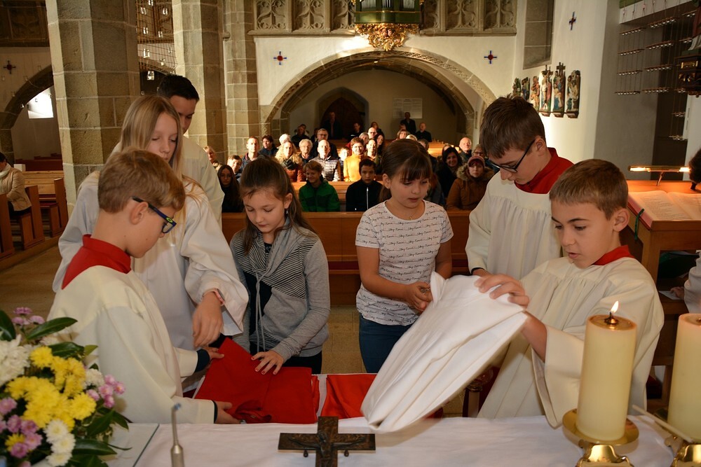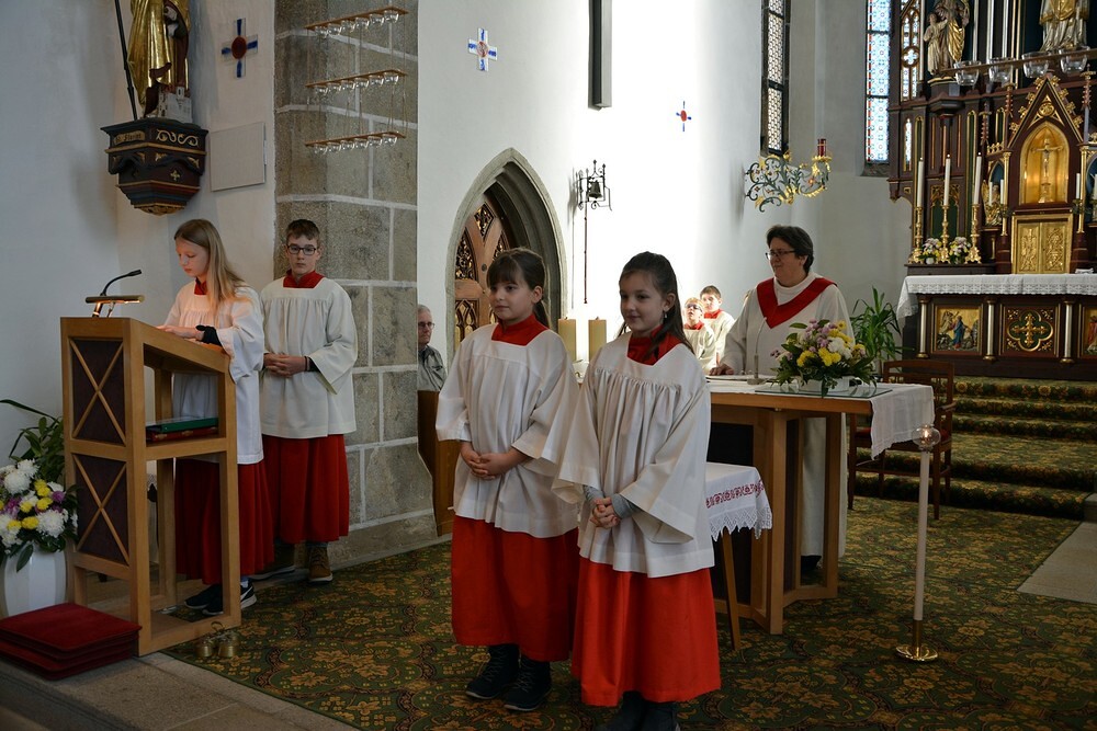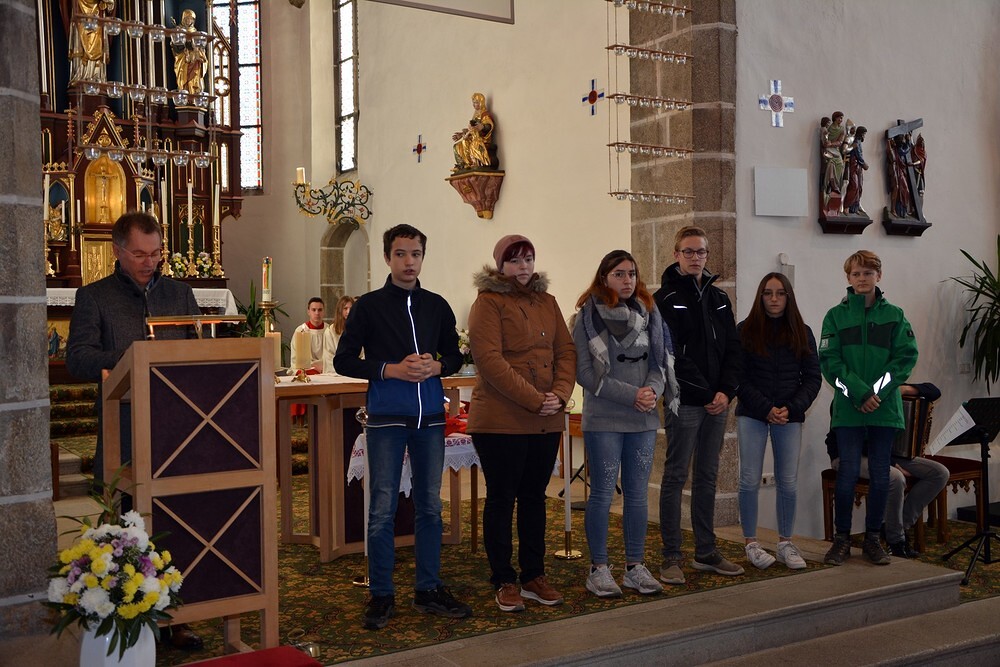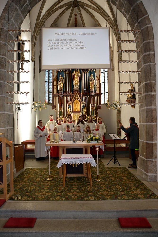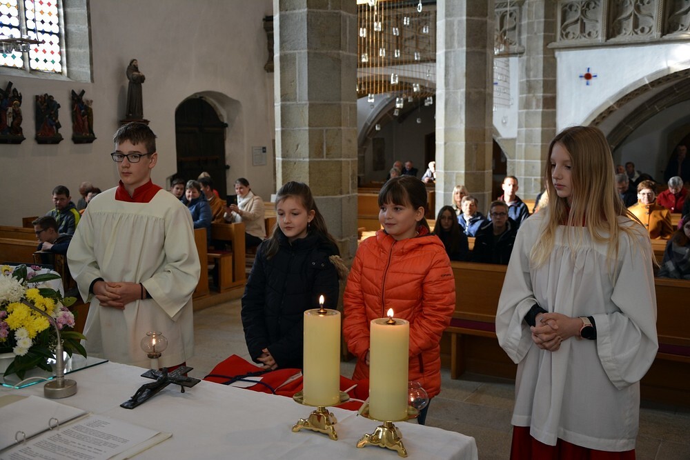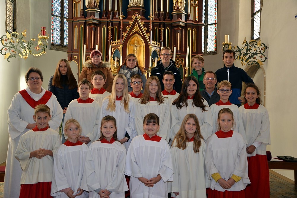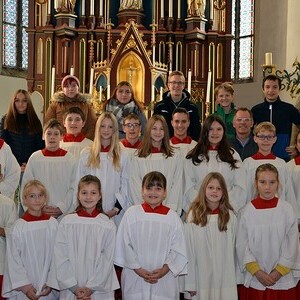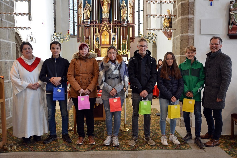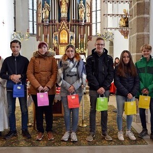 7 Ministrantinnen und Ministranten, die ihren Dienst beendet haben, wurden verabschiedet und bekamen ein kleines Dankgeschenk überreicht.