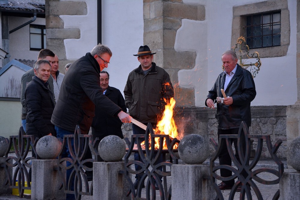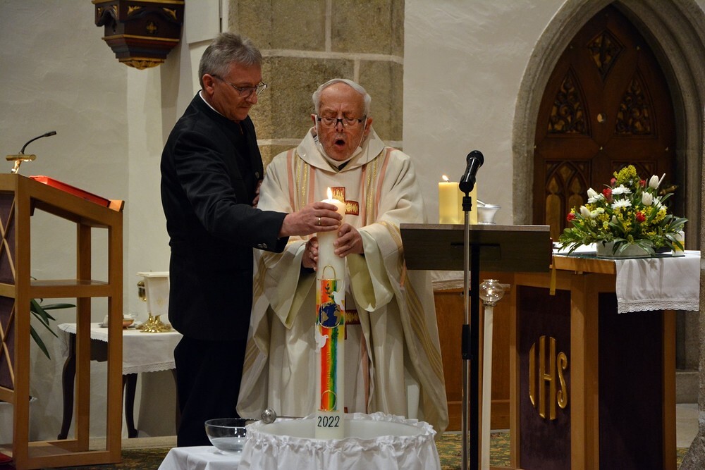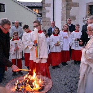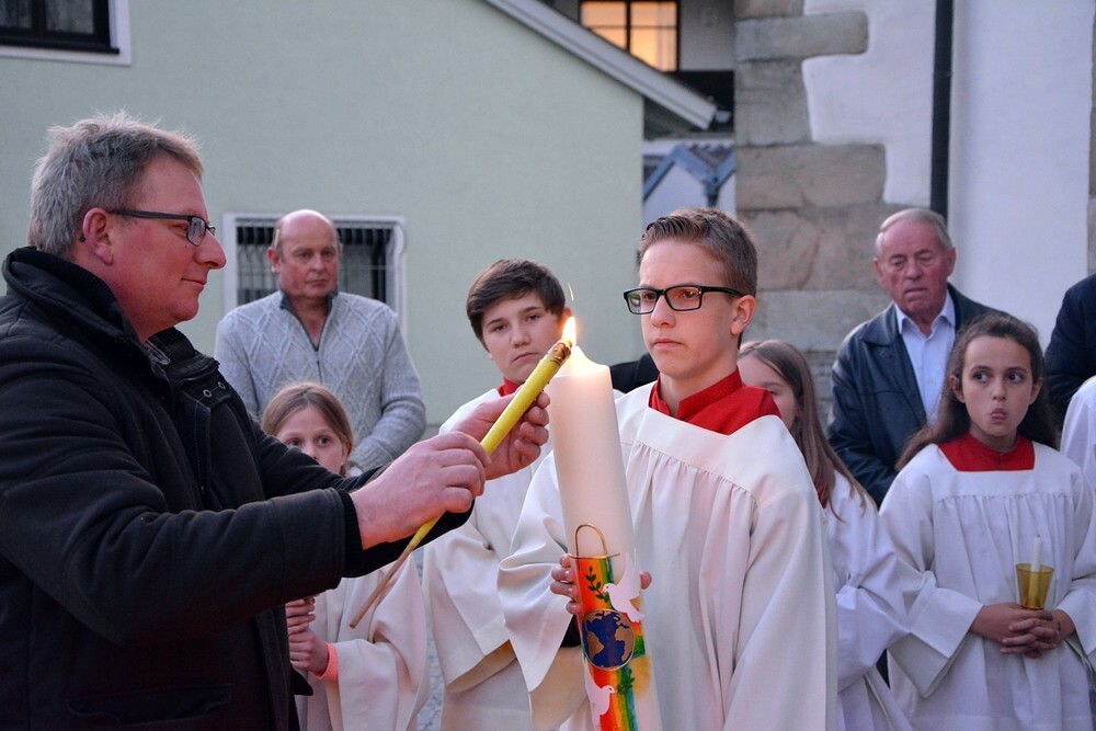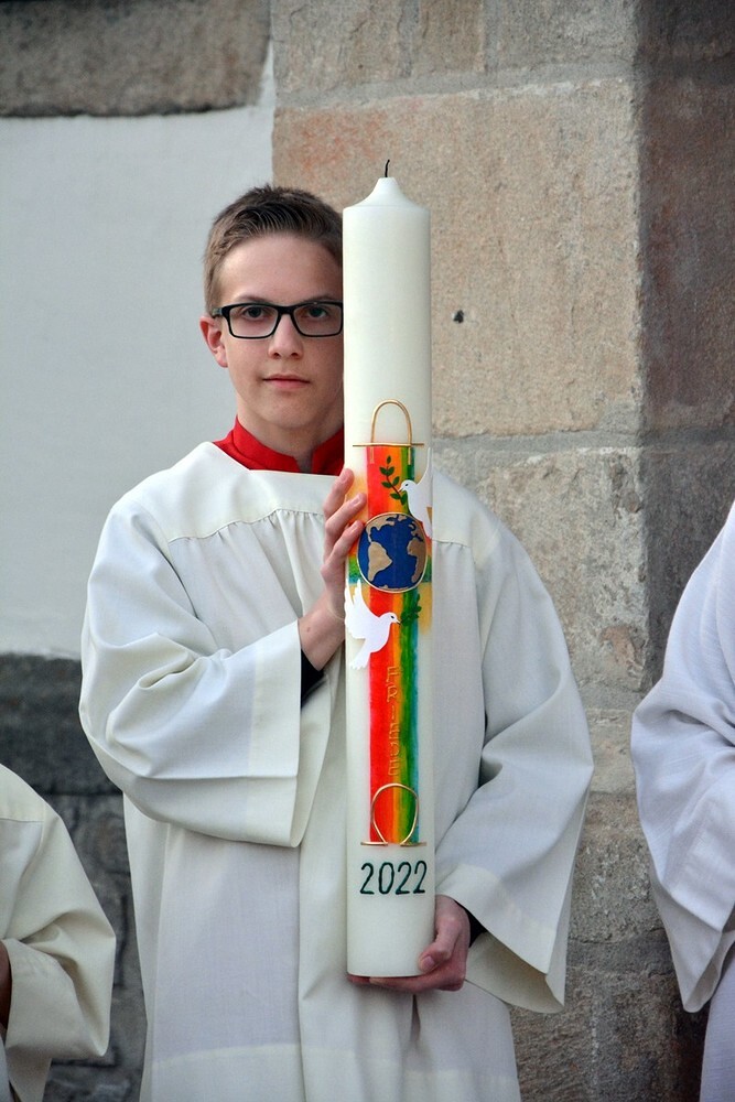 Die wunderschön verzierte Osterkerze wurde am Osterfeuer entzündet