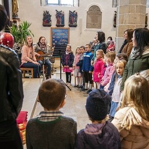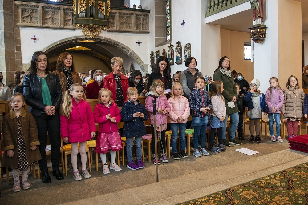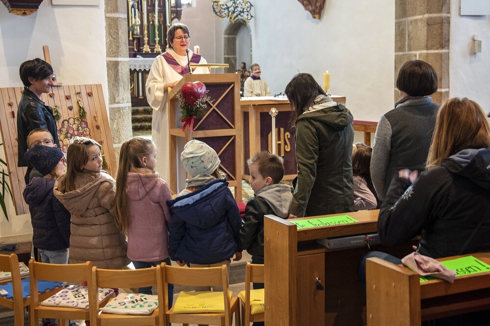 Der Kindergarten gestaltete den Gottesdienst mit Liedern und Musik, Texten und Gebeten zum Thema "Herzenswärme" mit.