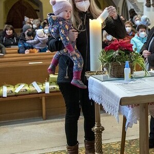 Jeder Familie wurde eine mit dem Namen verzierte Kerze überreicht, die zu Mariä Lichtmess gesegnet wurde.