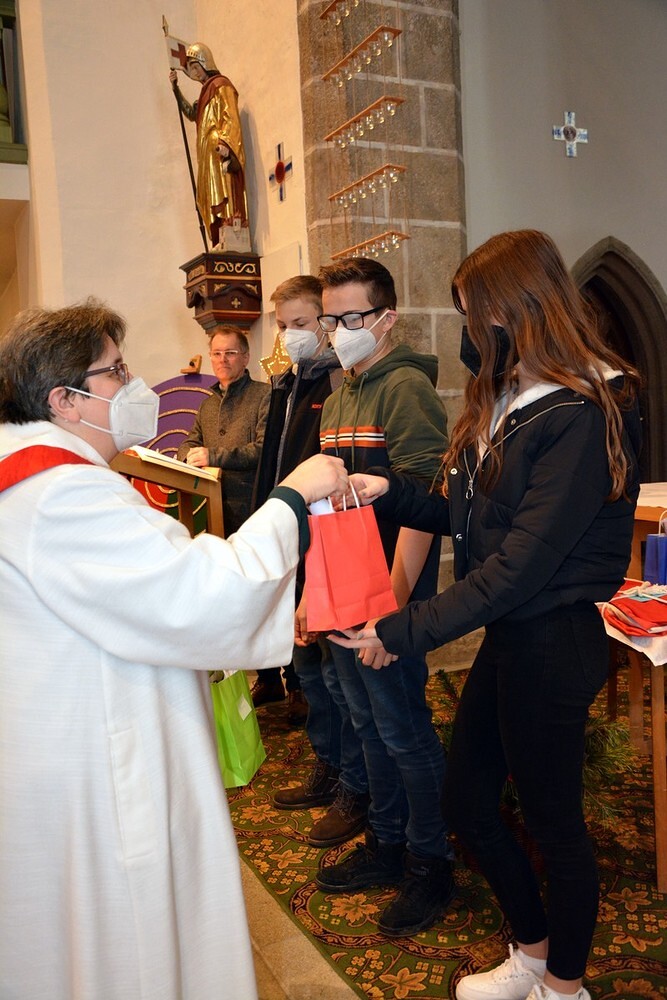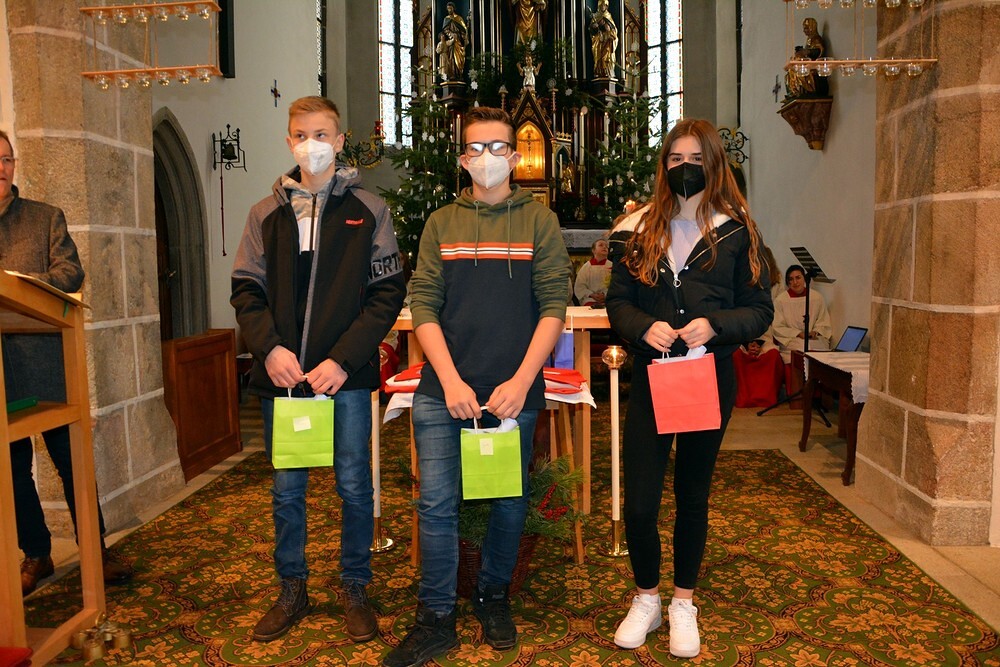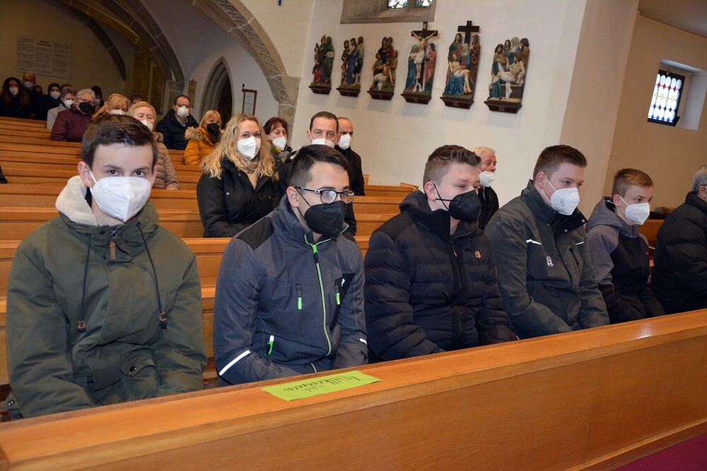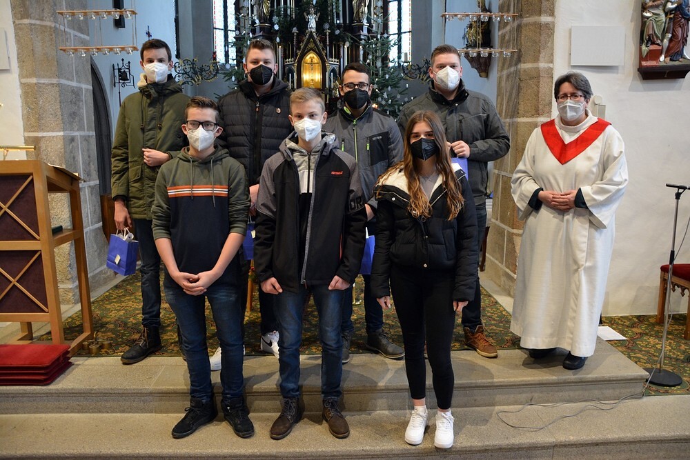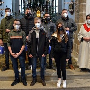 Sieben Jugendliche, die in den vergangenen zwei Jahren ihren Ministrantendienst beendet haben,