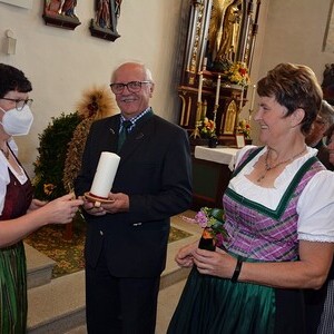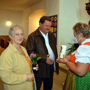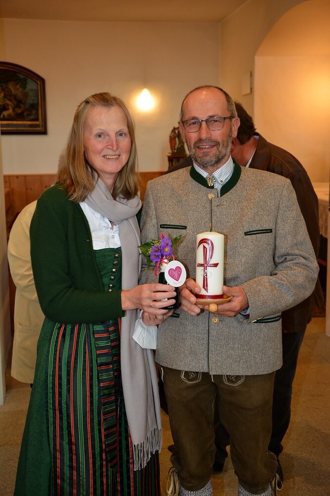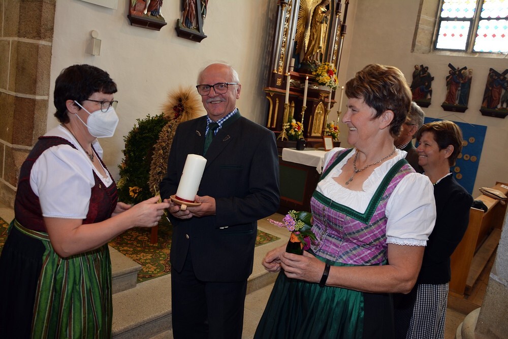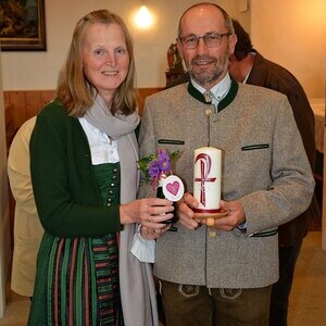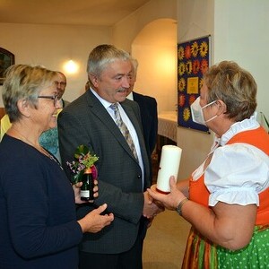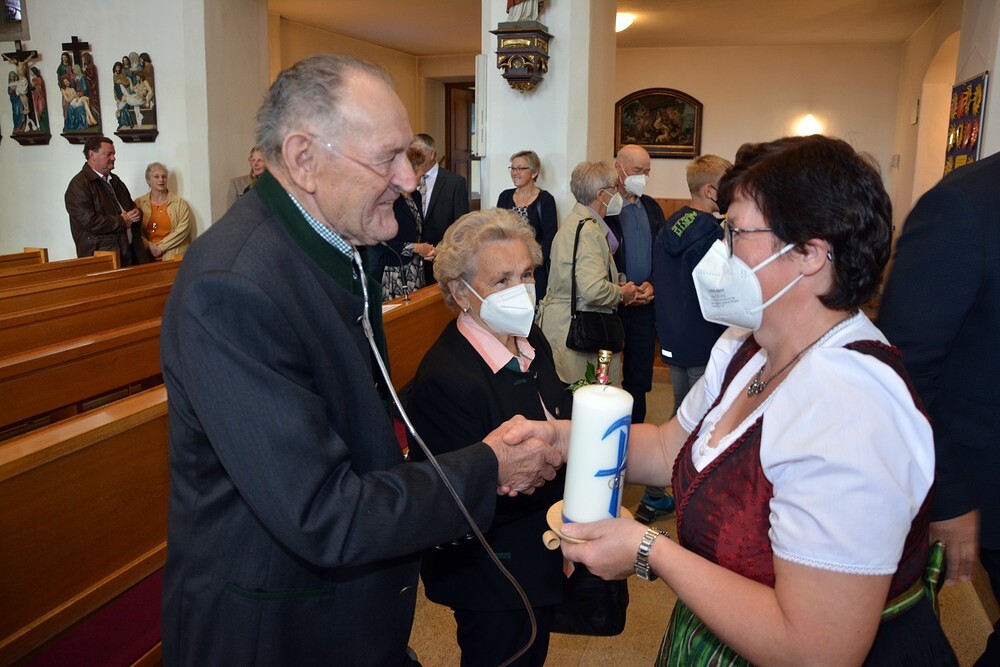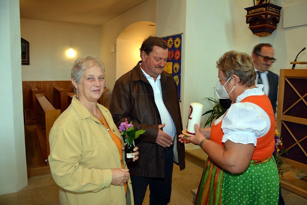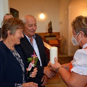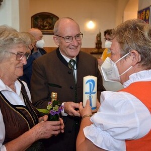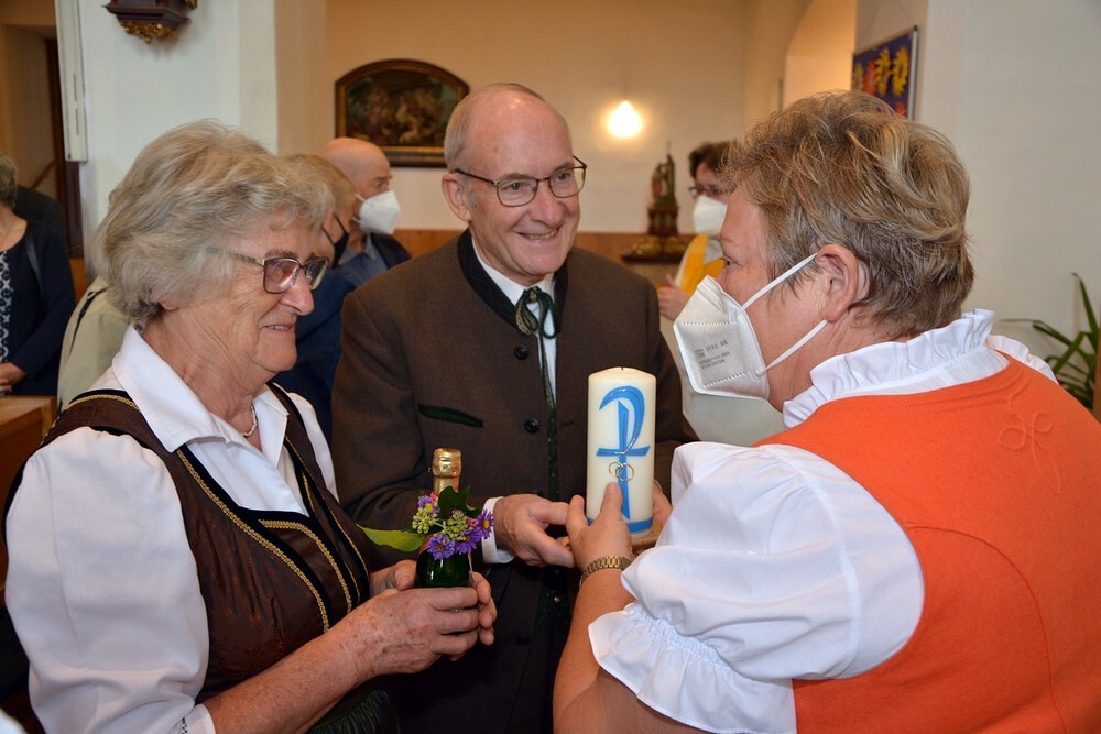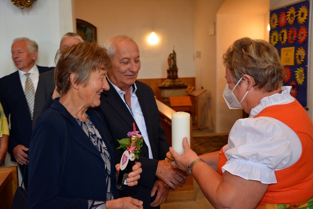 Alle Jubelpaare bekamen eine von der Goldhaubengruppe verzierte Kerze und eine kleine Aufmerksamkeit vom Pfarrgemeinderat.