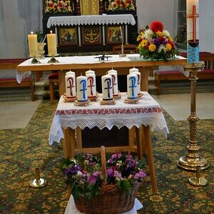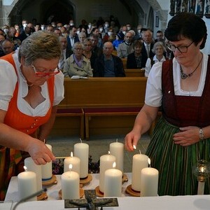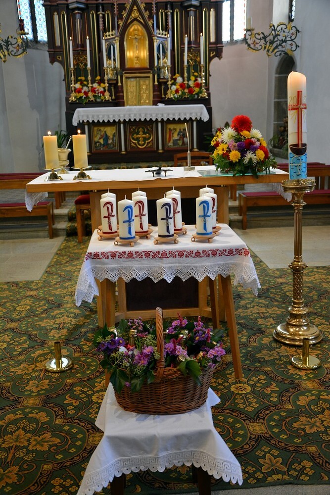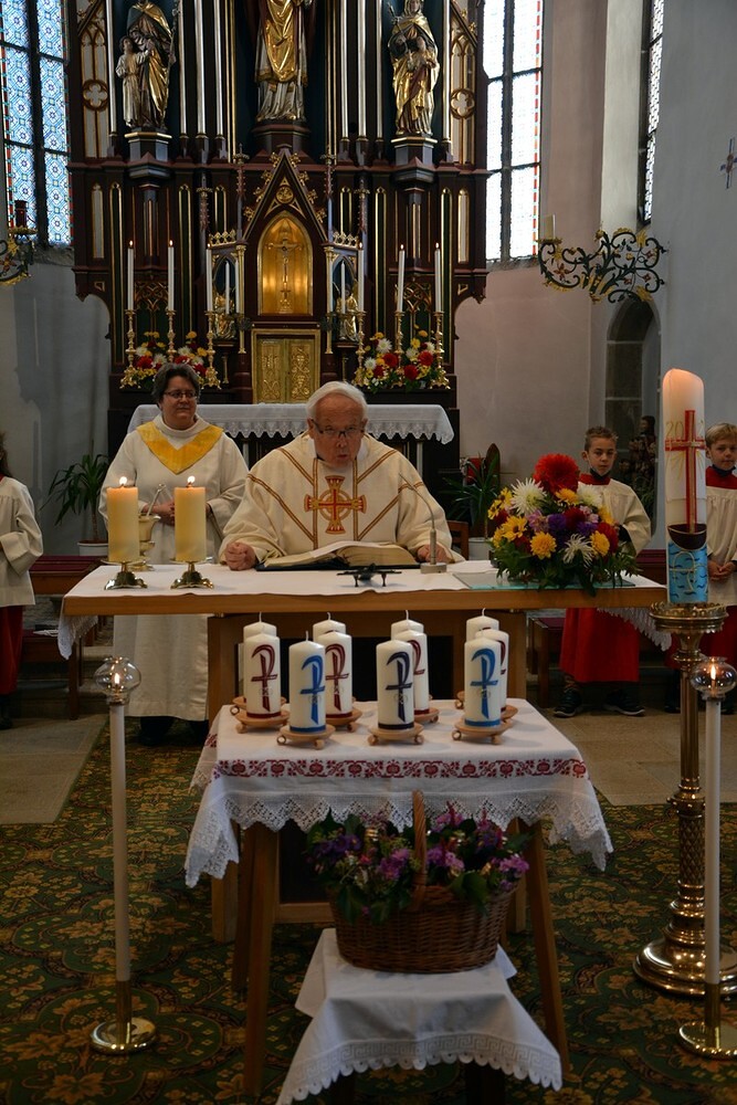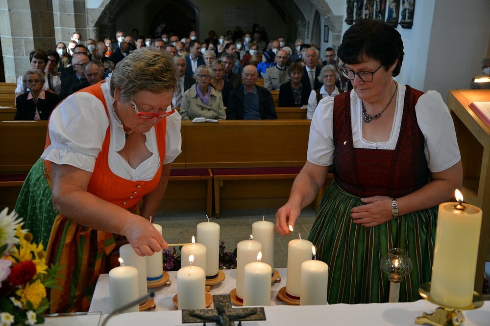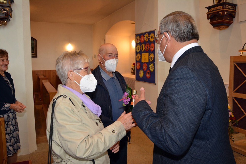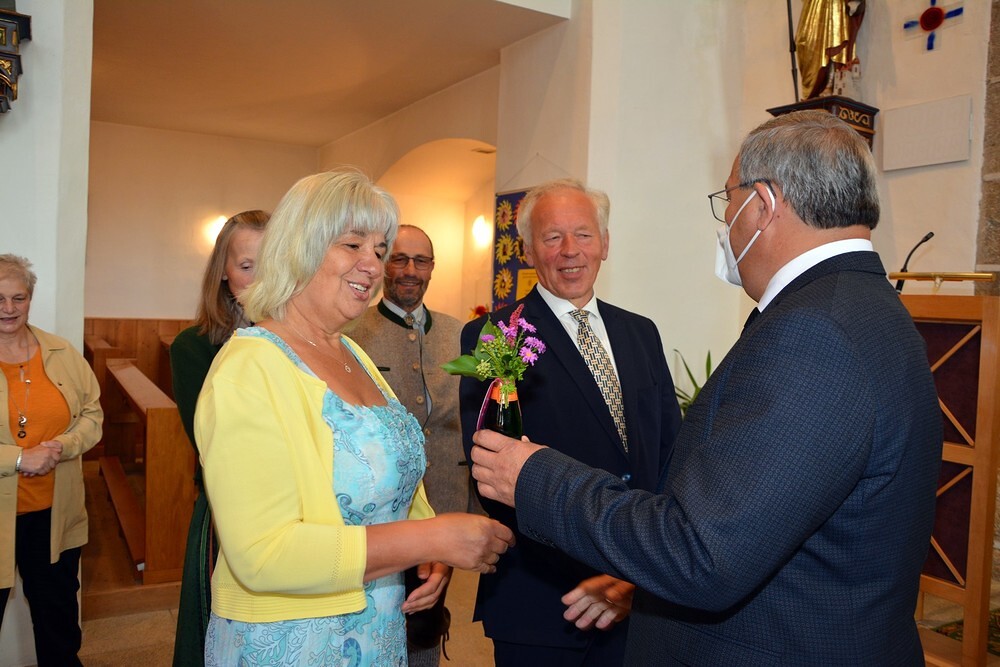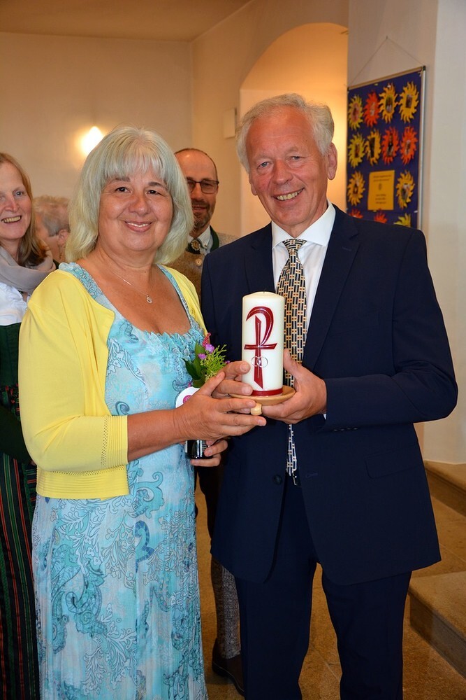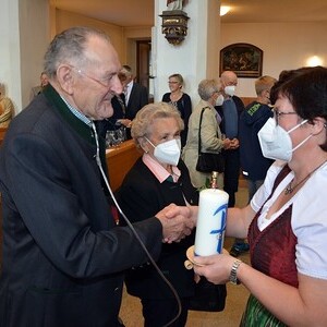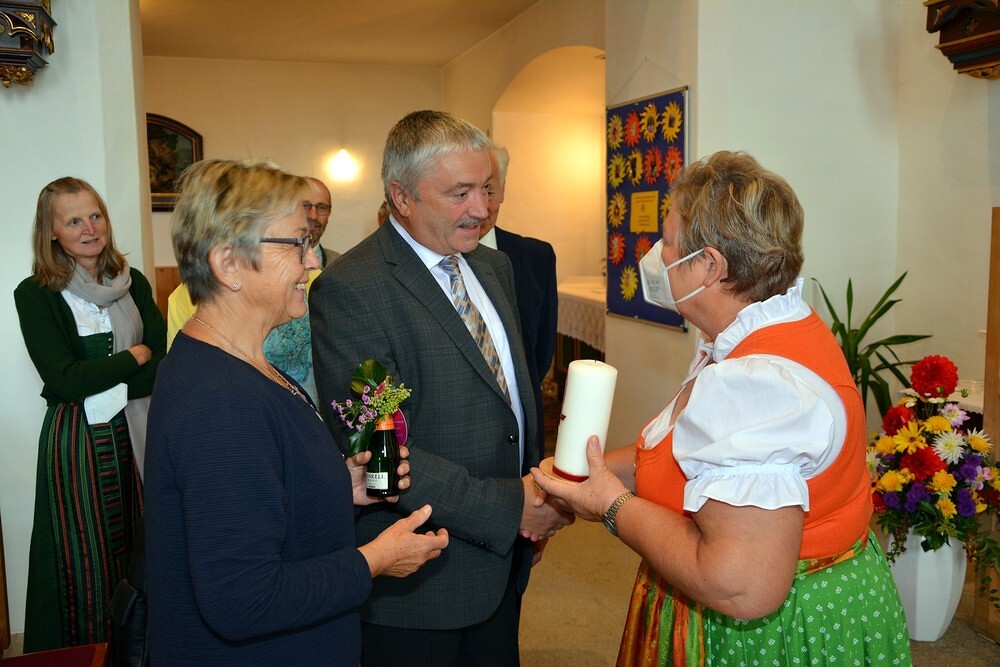 Alle Jubelpaare bekamen eine von der Goldhaubengruppe verzierte Kerze und eine kleine Aufmerksamkeit vom Pfarrgemeinderat.