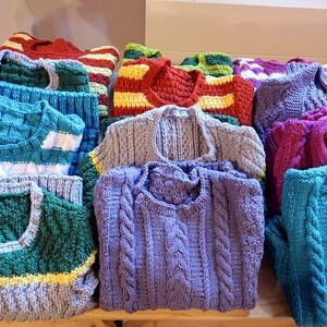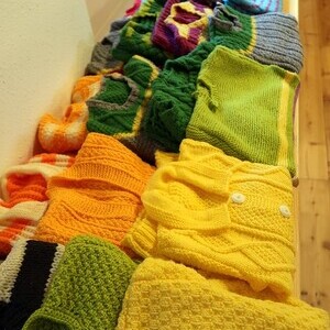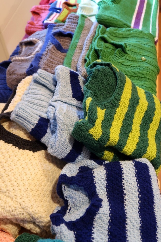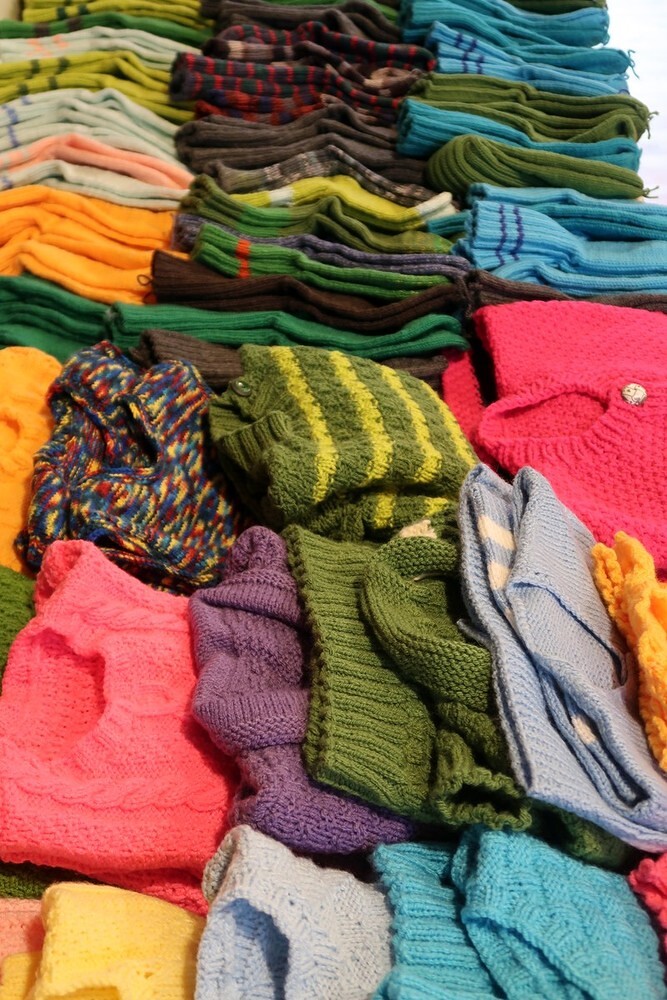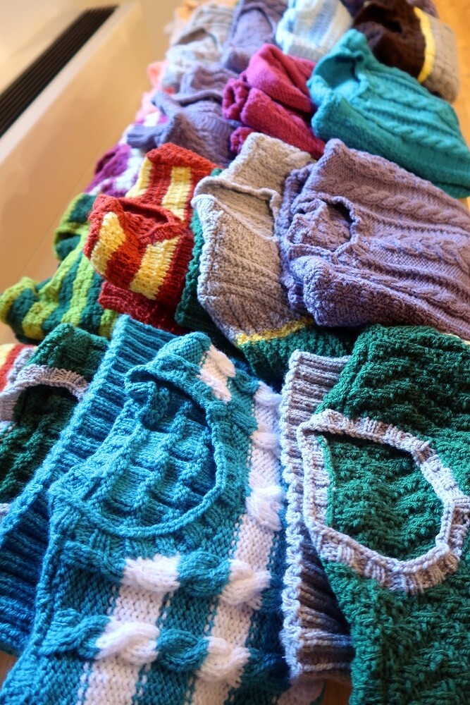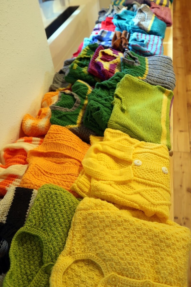 Der Großteil der Stricksachen wird wieder Menschen in Not zur Verfügung gestellt (heuer Obdachlosen in Linz und Menschen in Bulgarien).