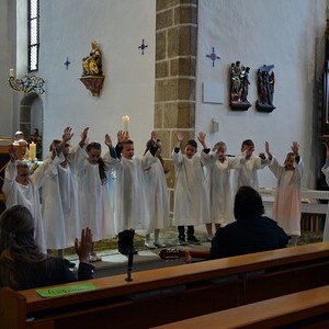 Wir sind sehr dankbar dafür, dass wir die beiden Erstkommunionfeiern im Kreis der Familien so festlich gestalten konnten.