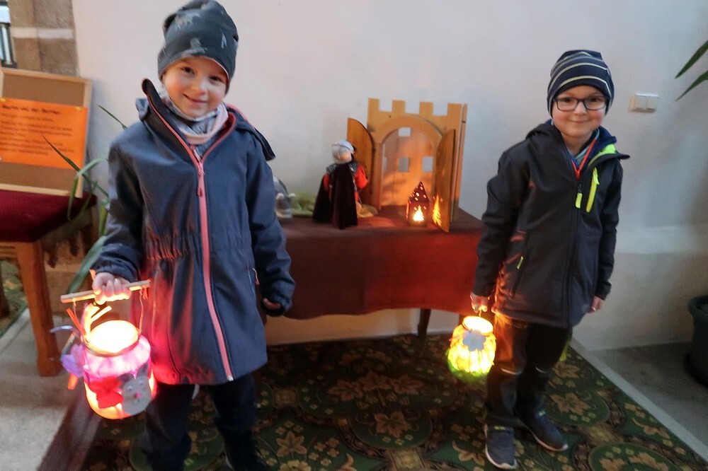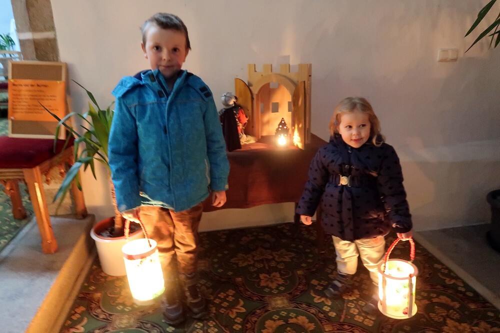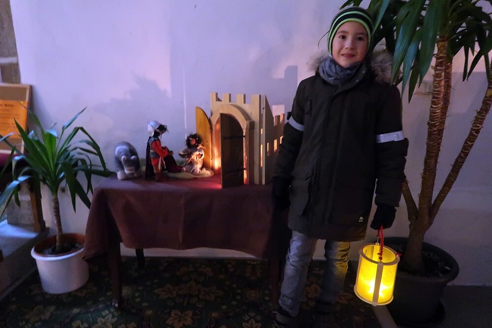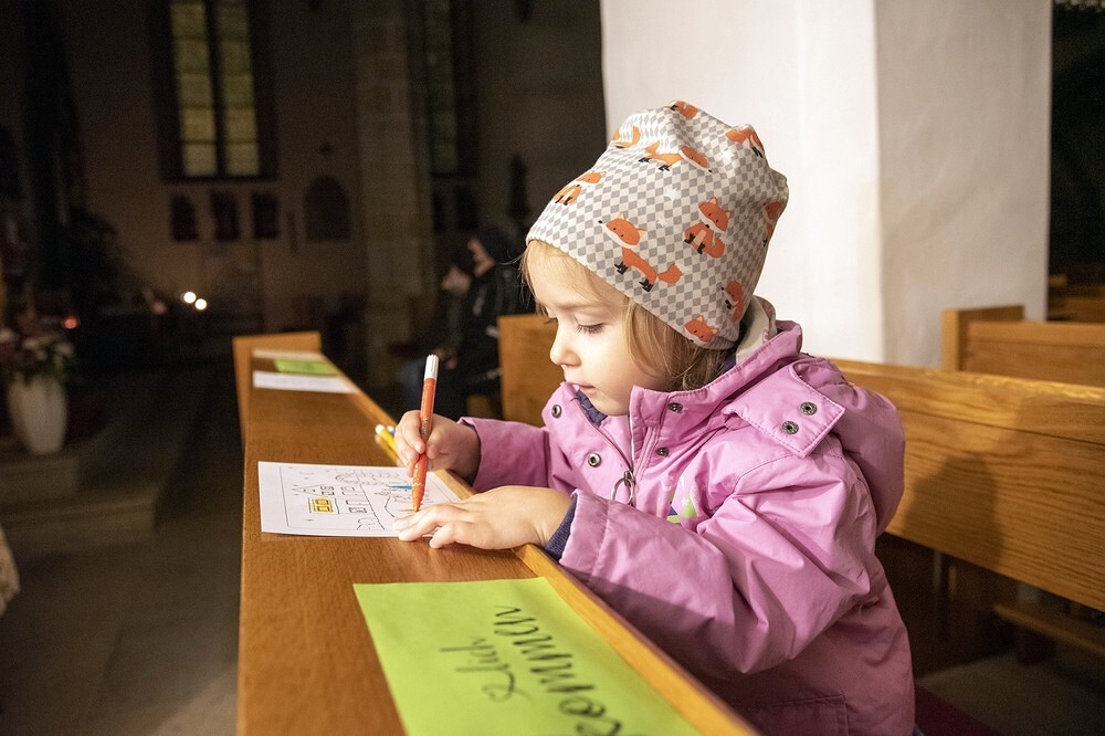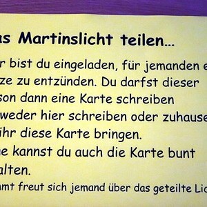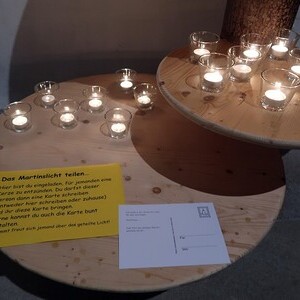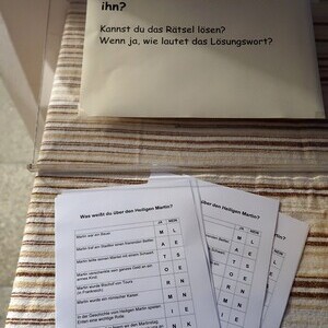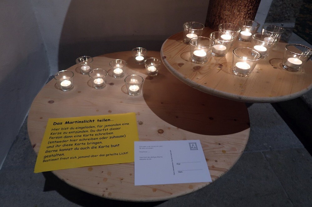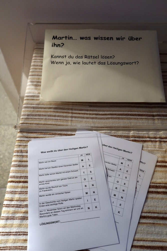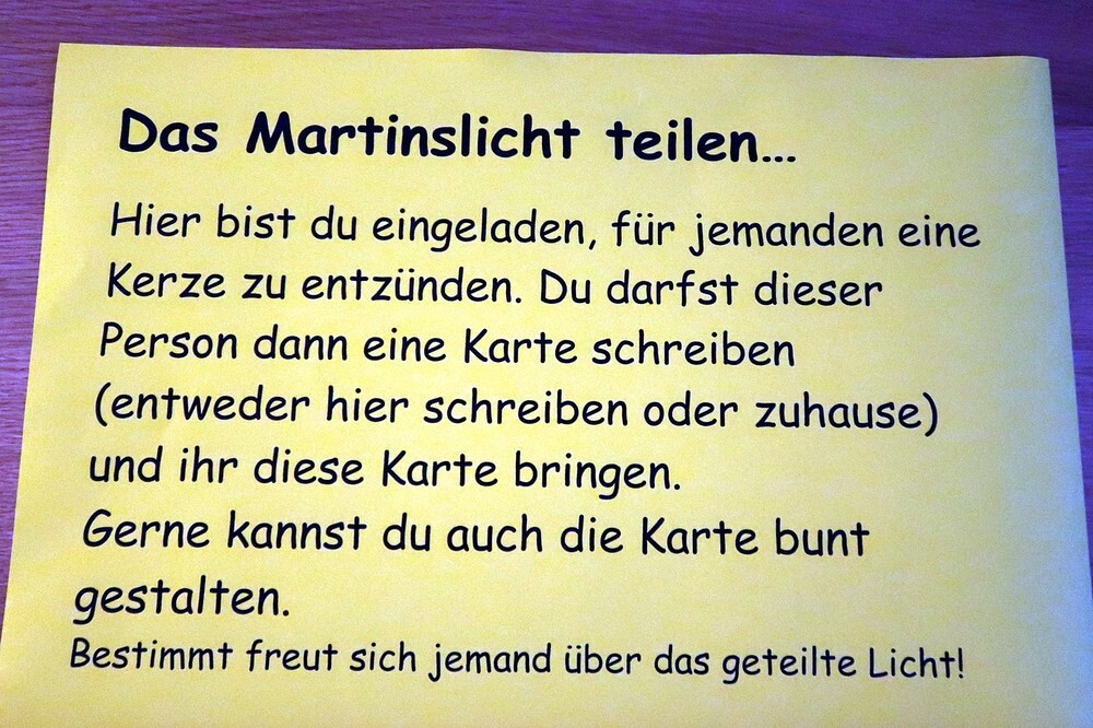 Die Kinder durften für einen anderen Menschen eine Kerze entzünden und diesem dann eine Karte schreiben. Für die größeren Kinder lag ein Rätsel über den Heiligen Martin bereit.