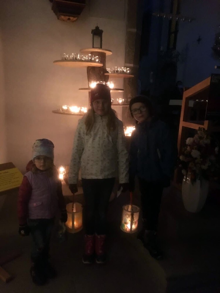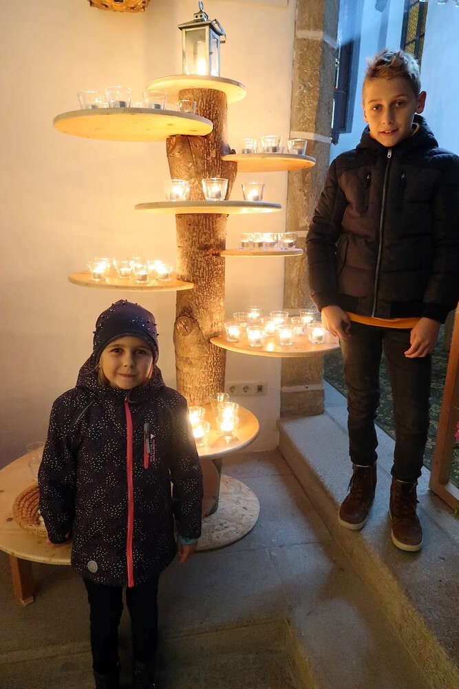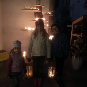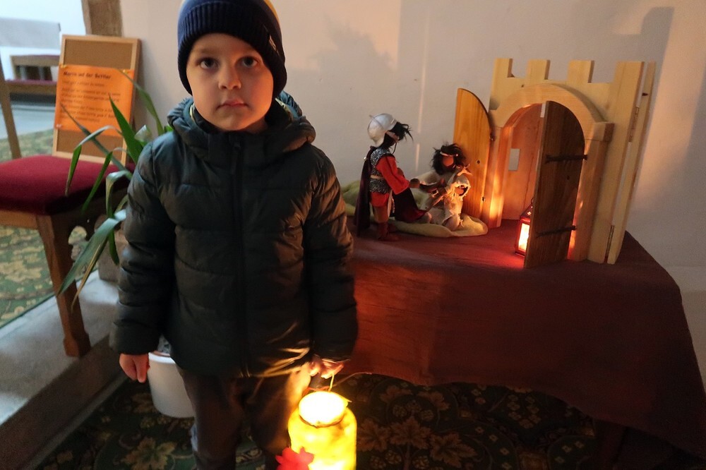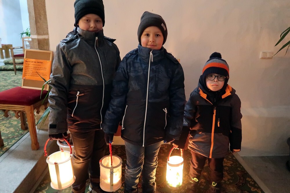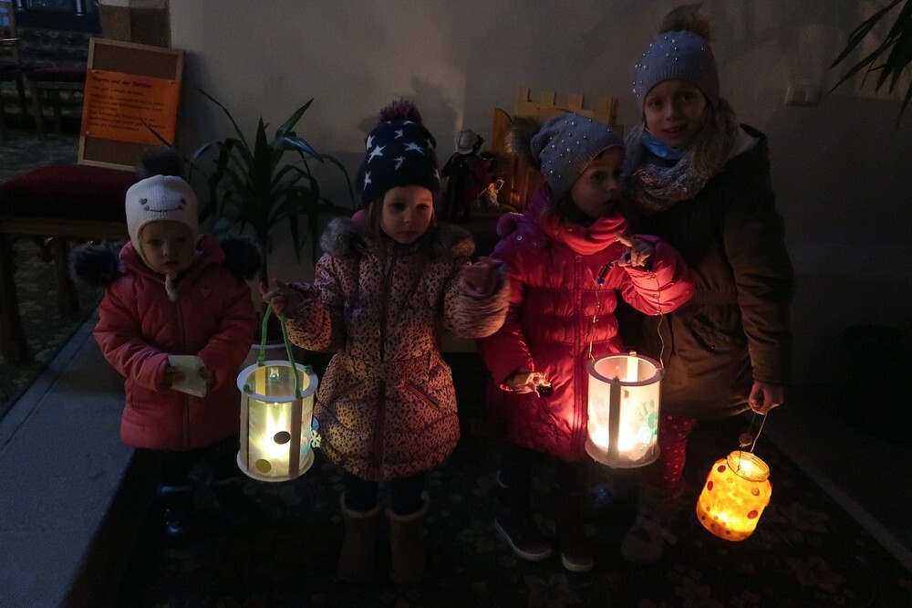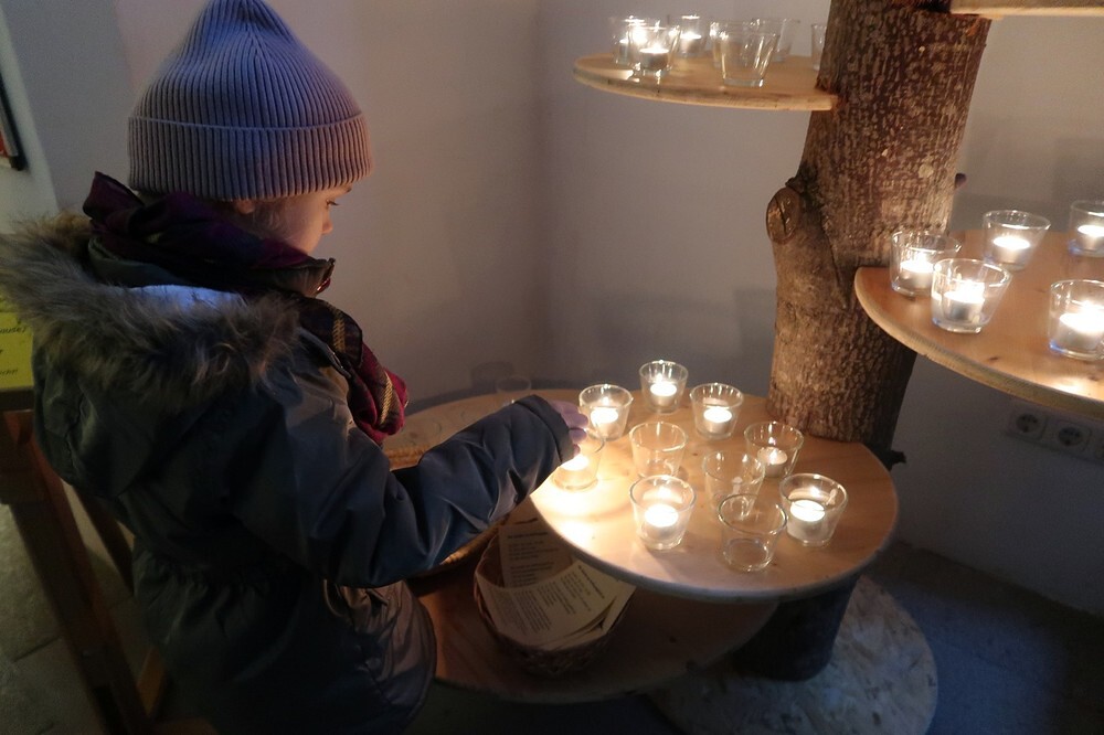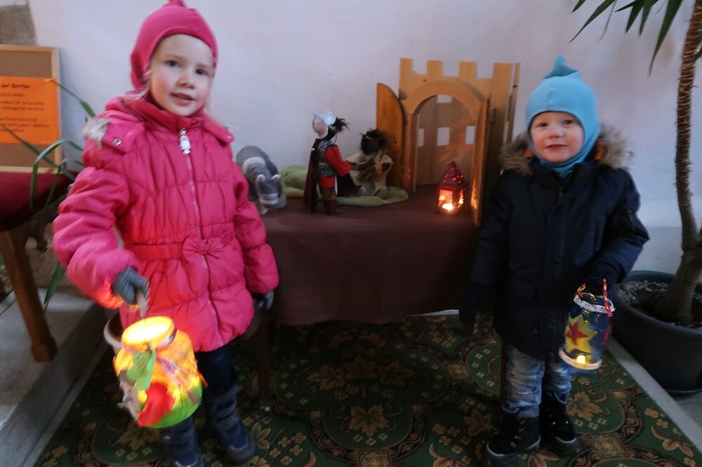 Die Kinder durften für einen anderen Menschen eine Kerze entzünden und diesem dann eine Karte schreiben. Für die größeren Kinder lag ein Rätsel über den Heiligen Martin bereit.