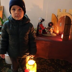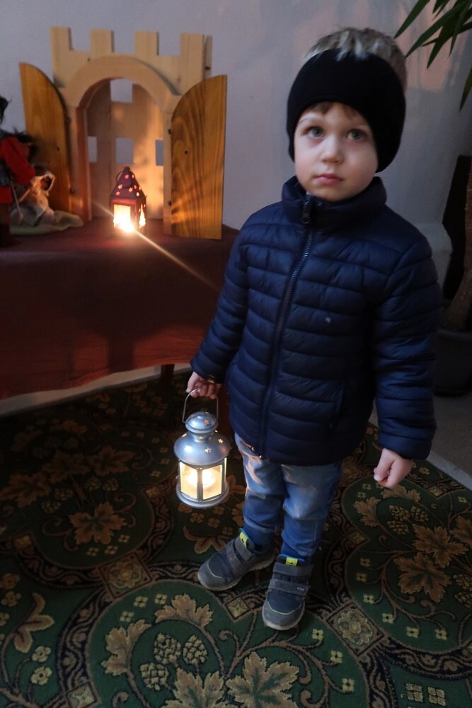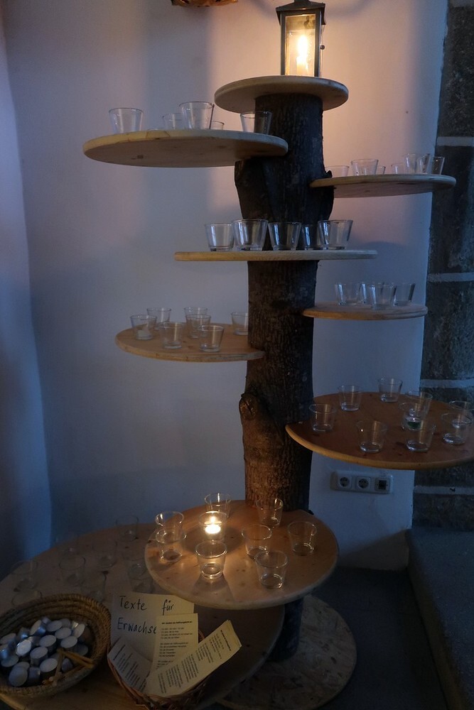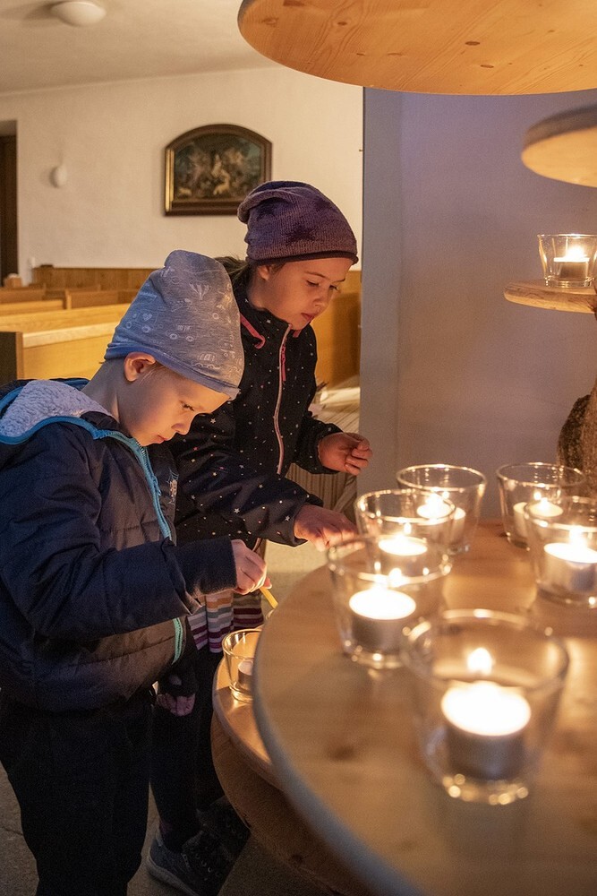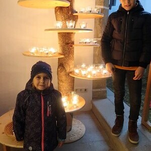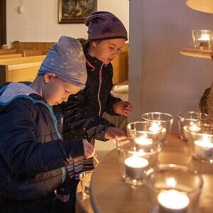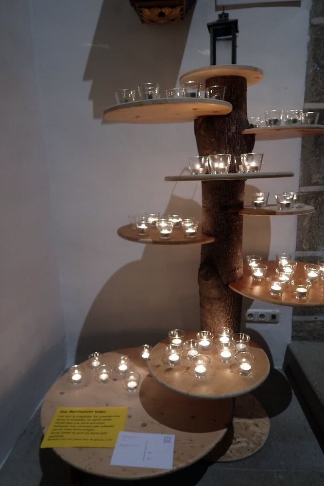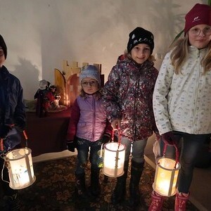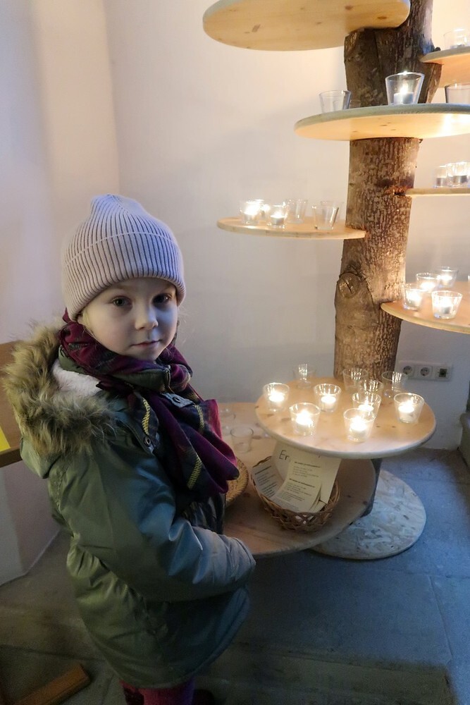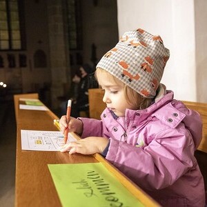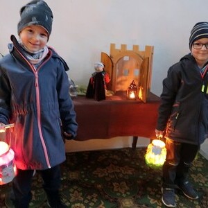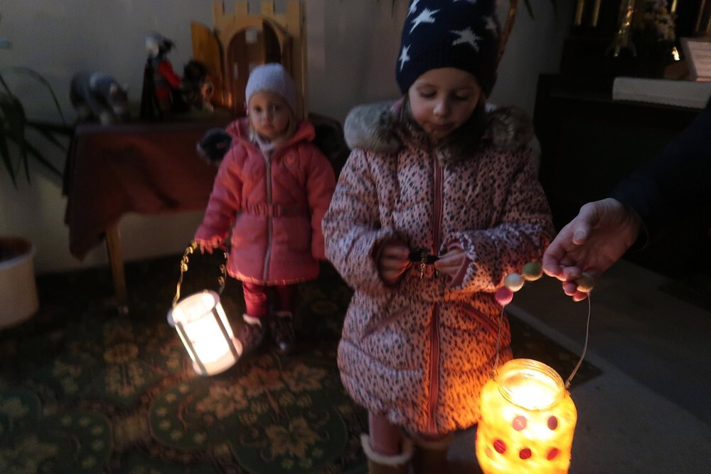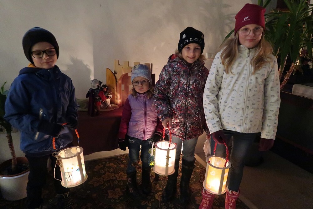 Die Kinder durften für einen anderen Menschen eine Kerze entzünden und diesem dann eine Karte schreiben. Für die größeren Kinder lag ein Rätsel über den Heiligen Martin bereit.