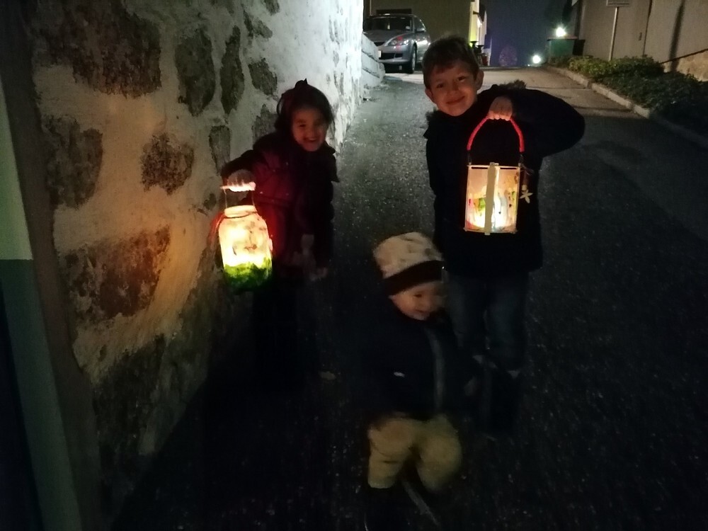 Die Kinder waren eingeladen, zuhause mit ihren Familien einen kleinen Laternenumzug zu machen und davon ein Bild zu schicken.