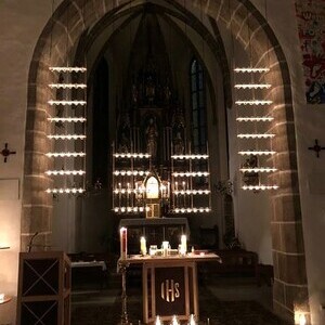 Danke an die zahlreichen Jugendlichen, die tatkräftig mitgeholfen haben und vor allem an Claudia und Wolfgang von der Jugendtankstelle, dass sie unsere Kirche an diesem Abend in ein besonderes Licht strahlen ließen.