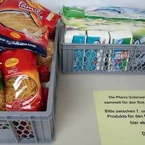 Zwischen 7. und 21. Juni war die Pfarrbevölkerung eingeladen, Lebensmittel, Reinigungs- und Hygieneartikel ins Pfarrheim zu bringen.