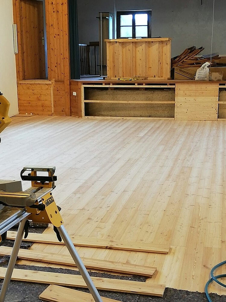 Es wird ein neuer Holzboden samt Unterbau gelegt, weiters werden eine Lautsprecheranlage samt induktiver Höranlage, ein fixer Beamer und eine neue Leinwand eingebaut und die Heizung wird verbessert.