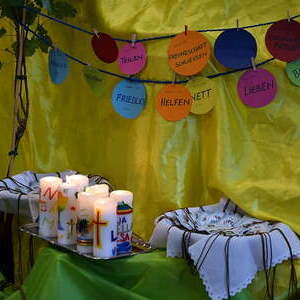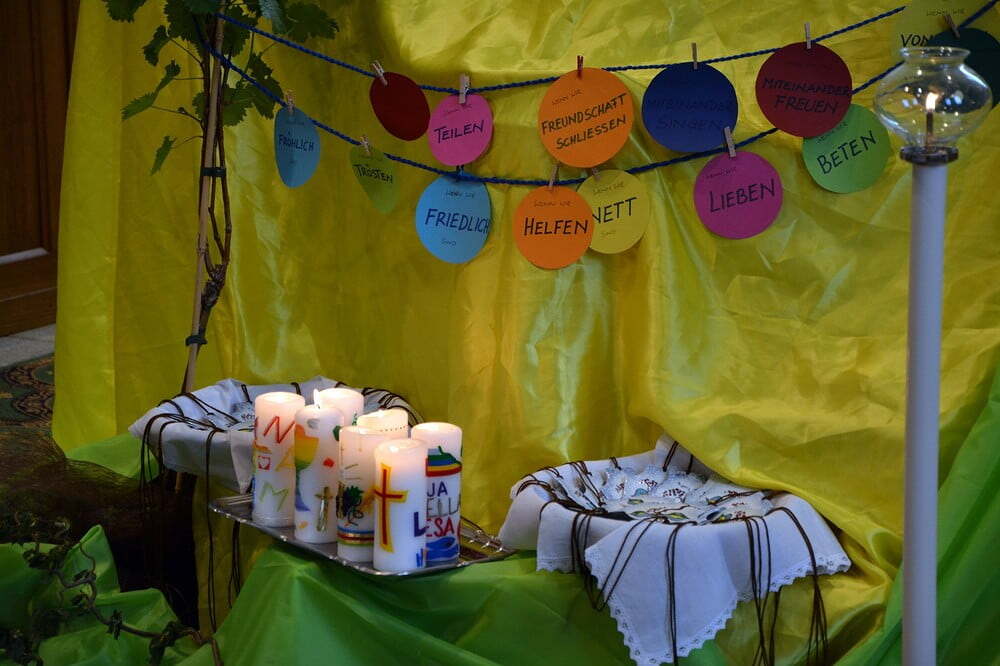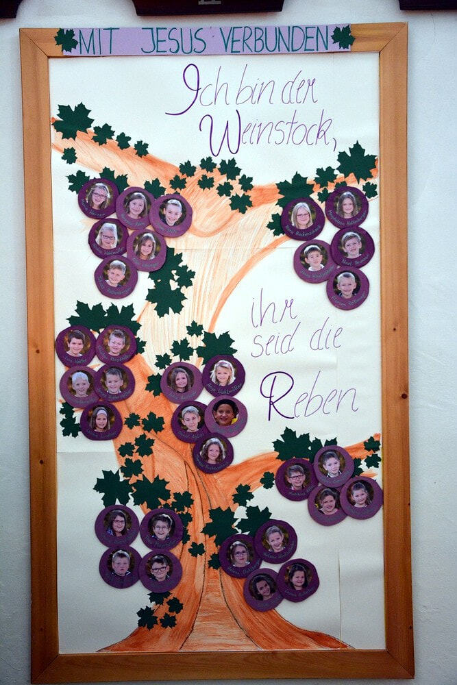Das Motto “Verbunden mit Jesus. Ich bin der Weinstock, ihr seid die Reben” begleitete uns durch den Gottesdienst.
