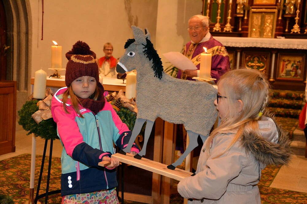 Heuer machen sich Tiere auf den Weg zur Krippe - bei der Adventkranzsegnung machte der Esel den Anfang ...