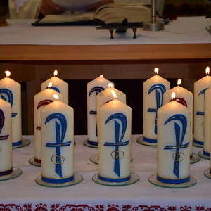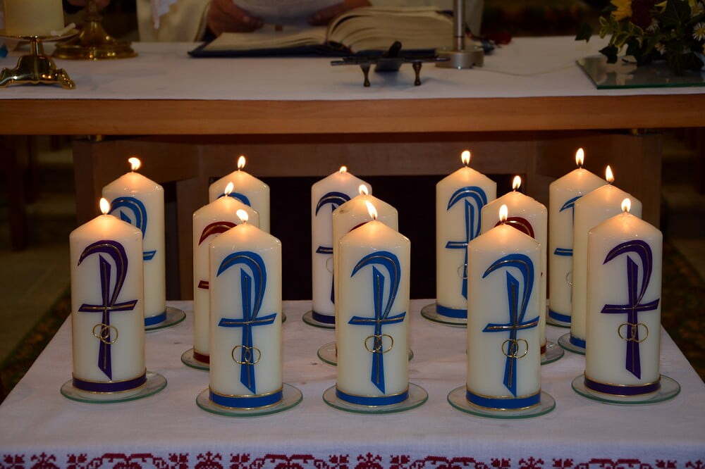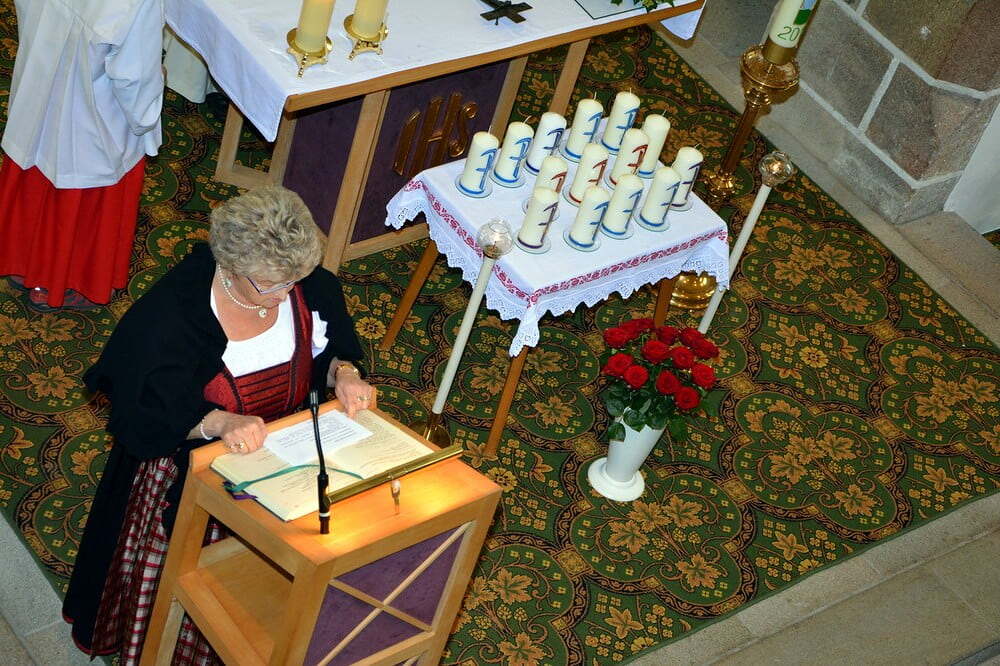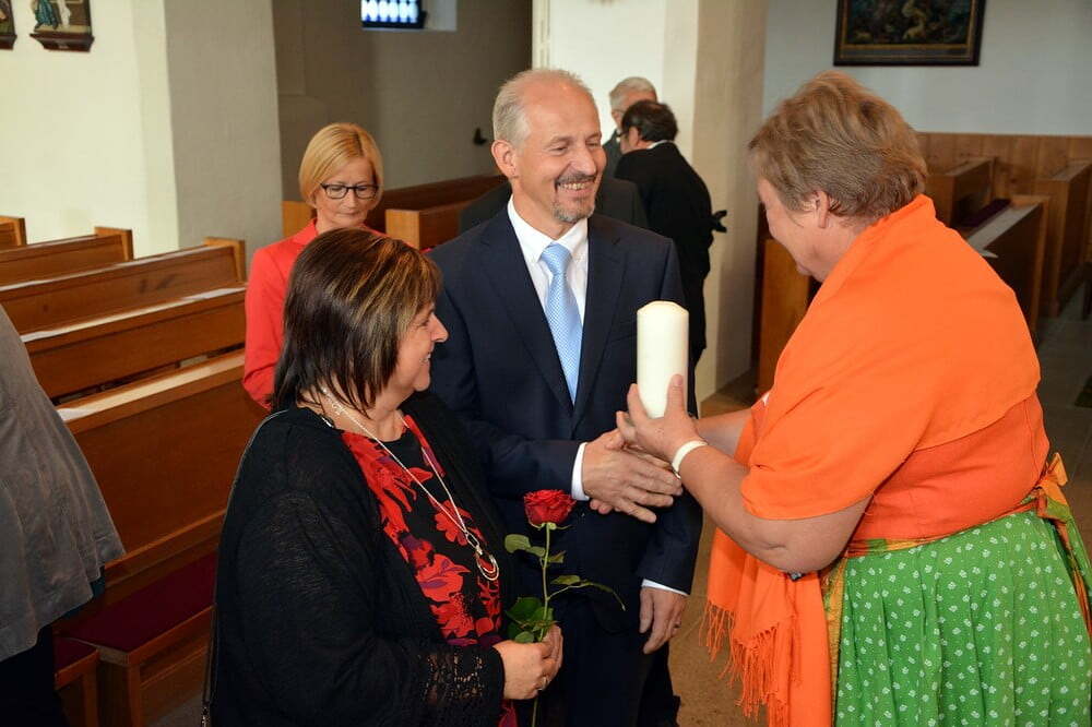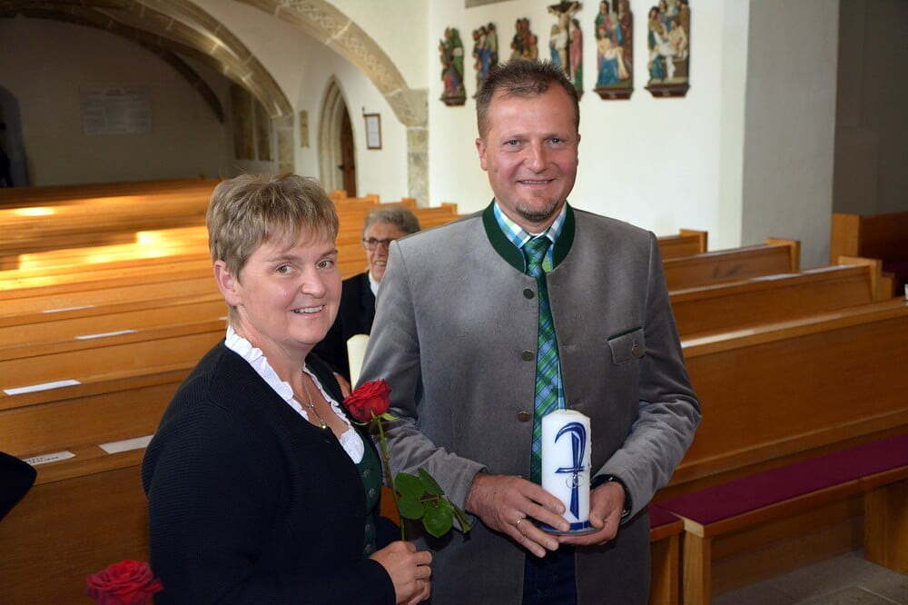 Jedes Paar bekam von der Goldhaubengruppe eine Jubiläumshochzeitskerze überreicht.