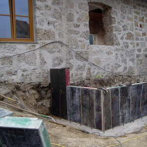 In einem ersten Schritt wird das Totengräberhaus saniert und vergrößert und mit einer Toilettenanlage versehen.