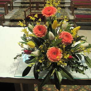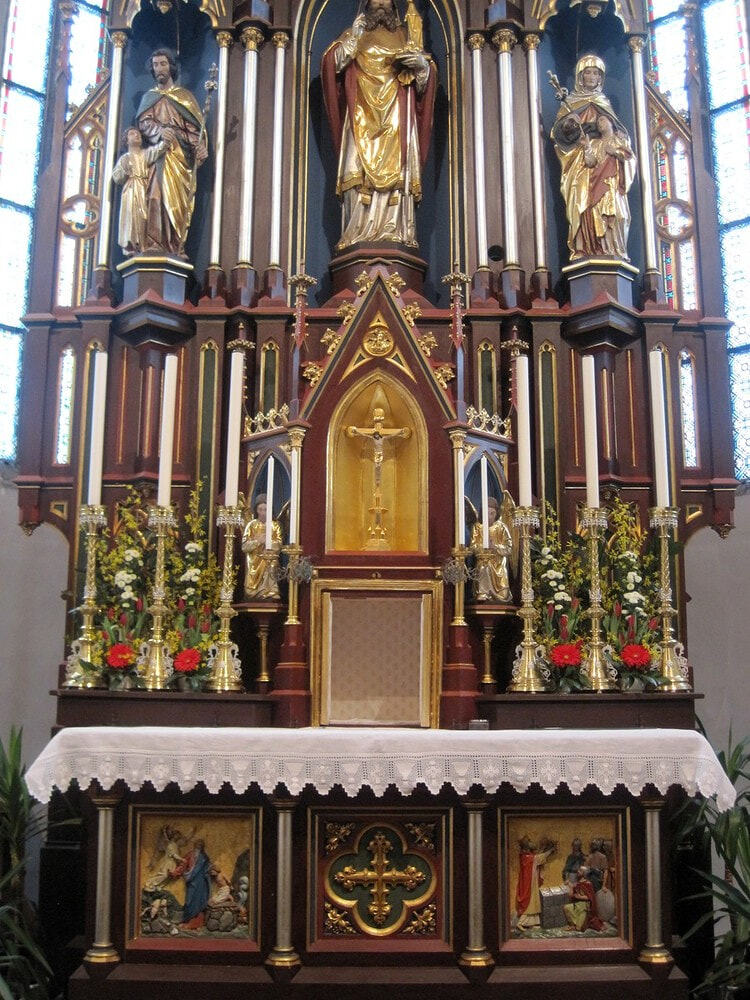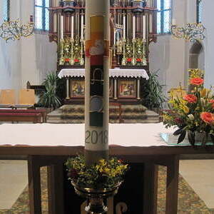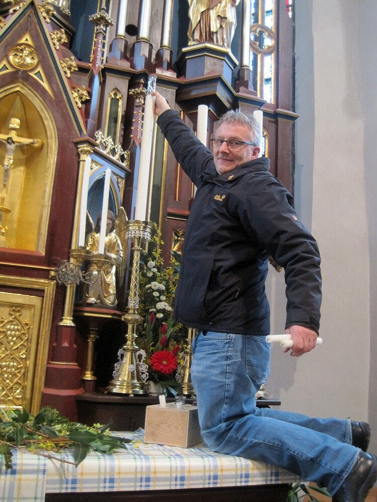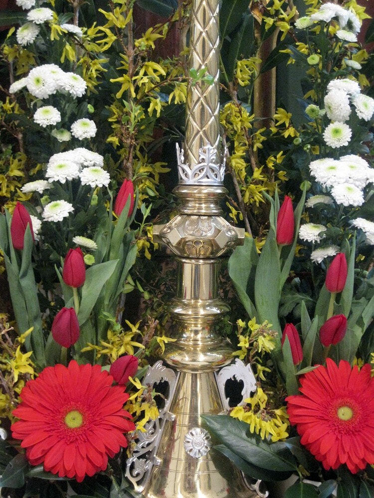 schmückt die Kirche festlich für die Osternachtsfeier.