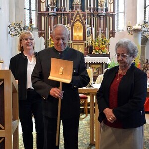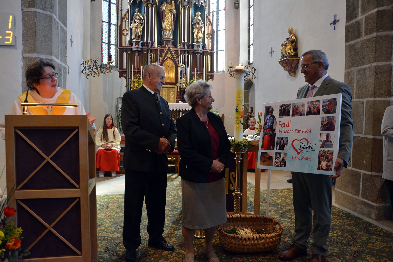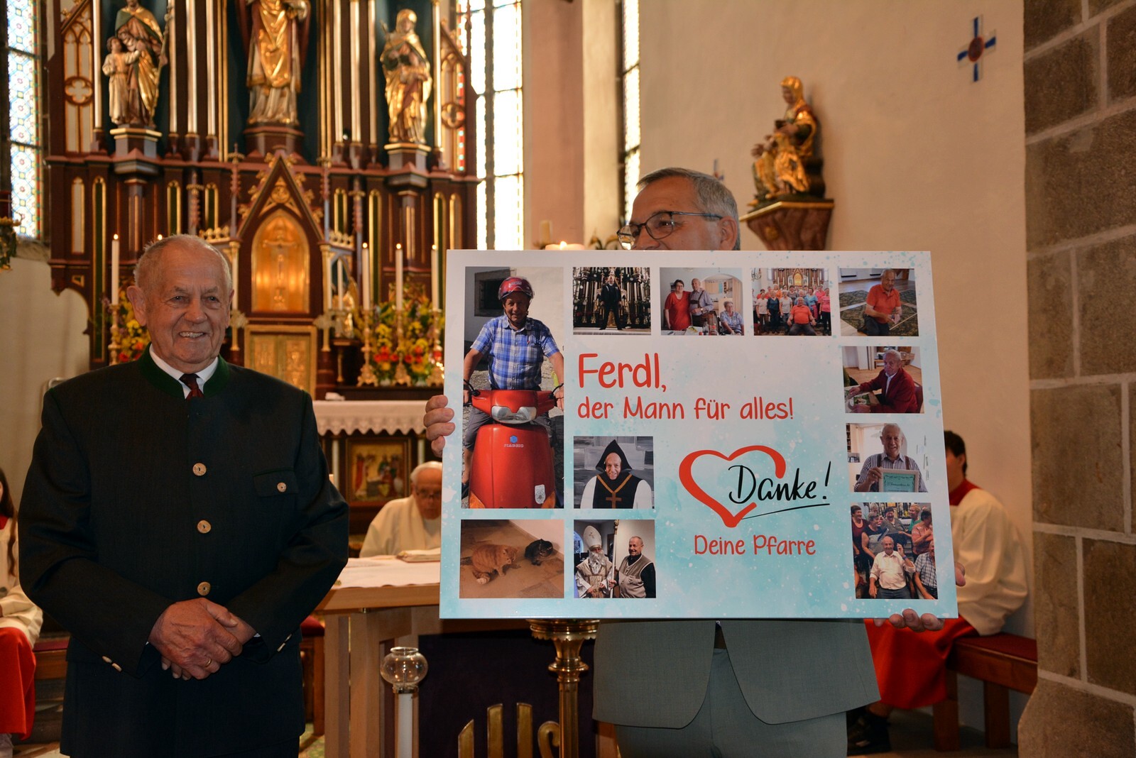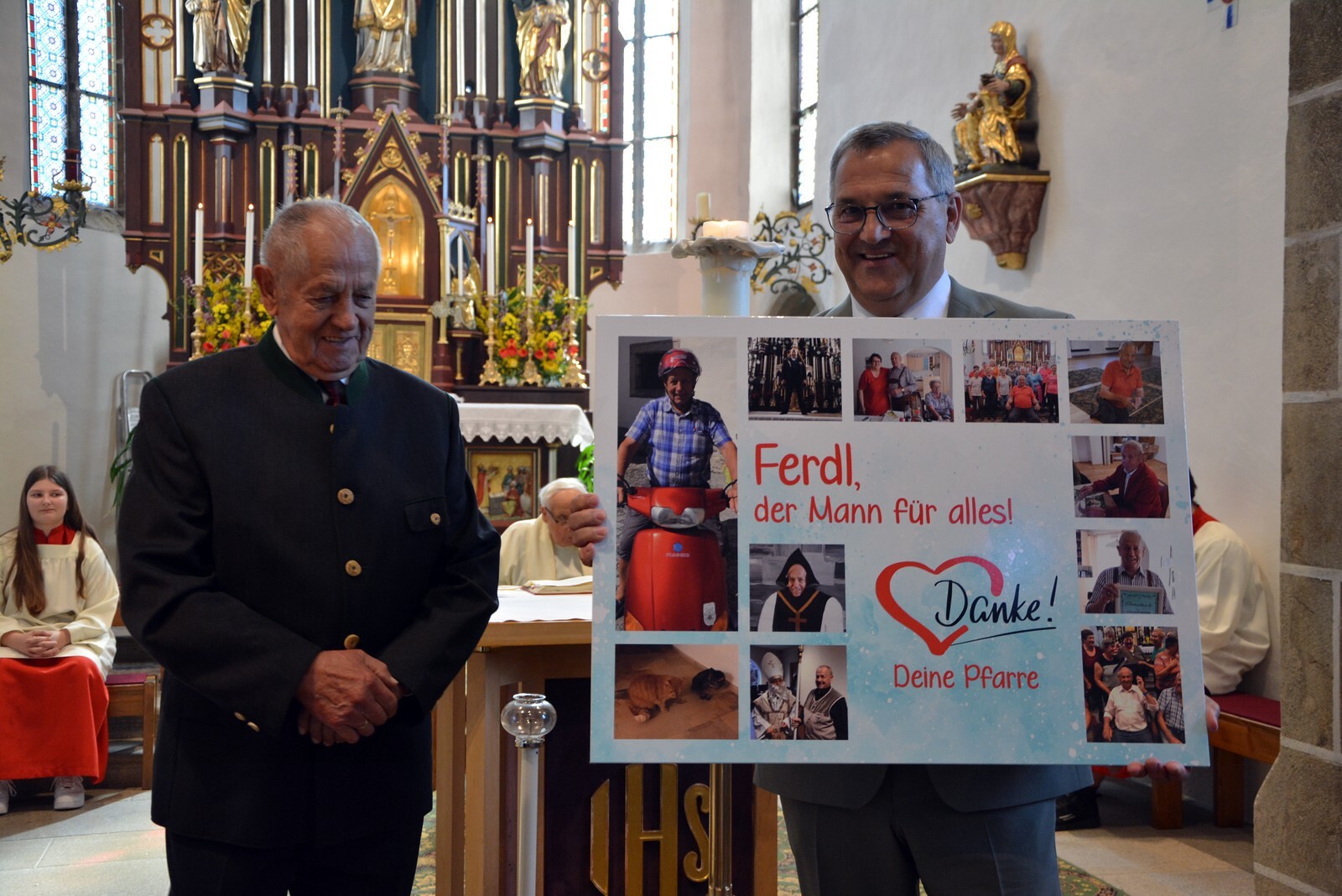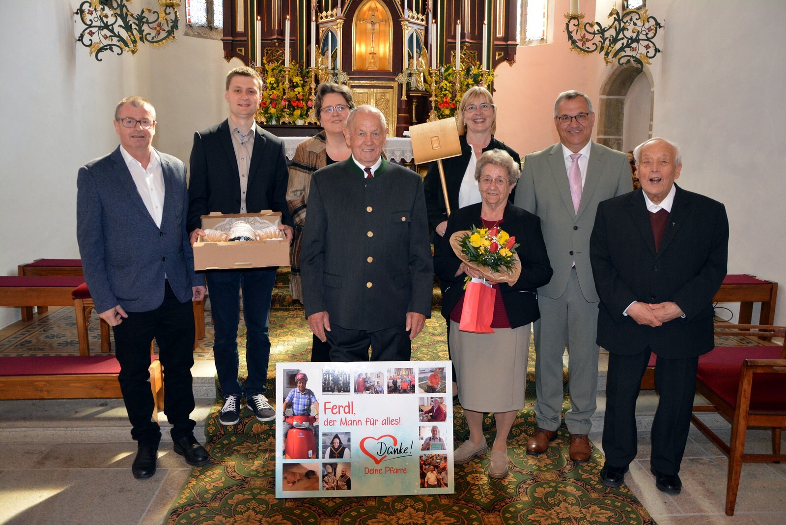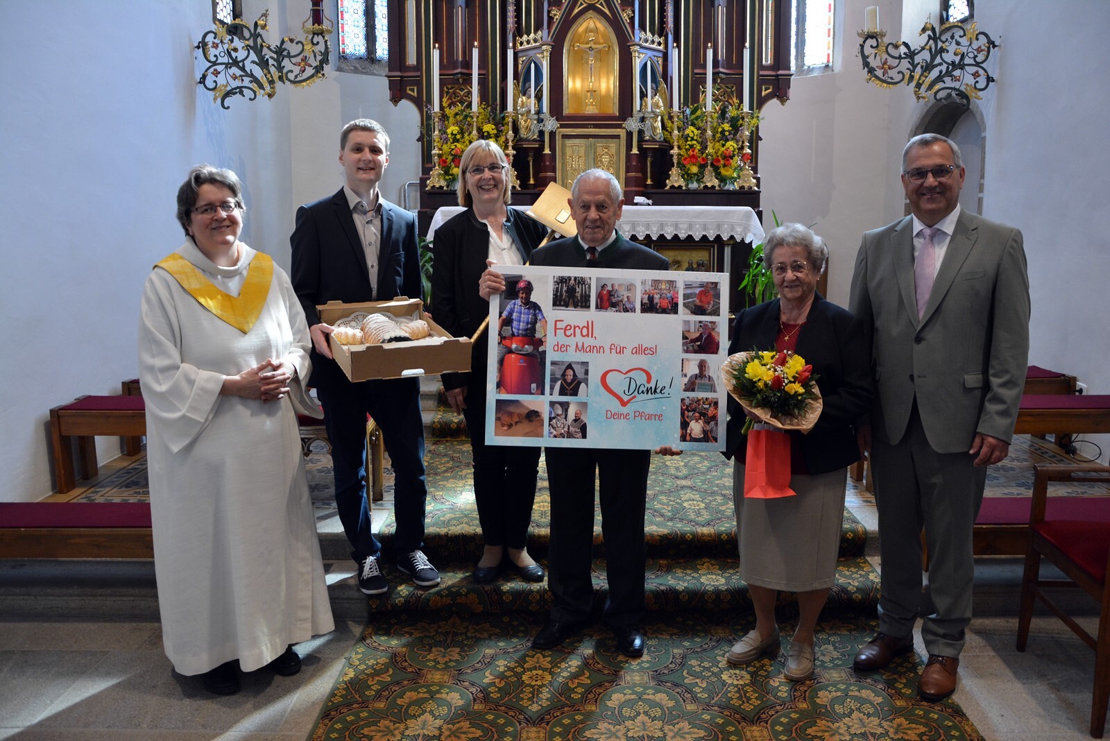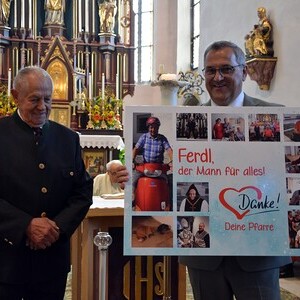 Am Ende des Gottesdienstes überraschten wir unseren Hausmeister Ferdinand Windischhofer und bedankten uns für seine jahrelange Tätigkeit.