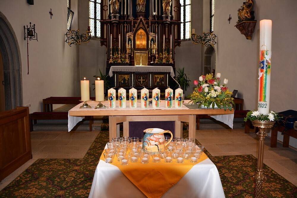 Erstkommunion 2022 Am Sonntag, 15. Mai 2022 feierten wir Erstkommunion. Unter dem Motto "Jesus, Quelle des Lebens" waren 19 Kinder zum ersten Mal zum Tisch des Herrn gerufen. mehr: Erstkommunion 2022