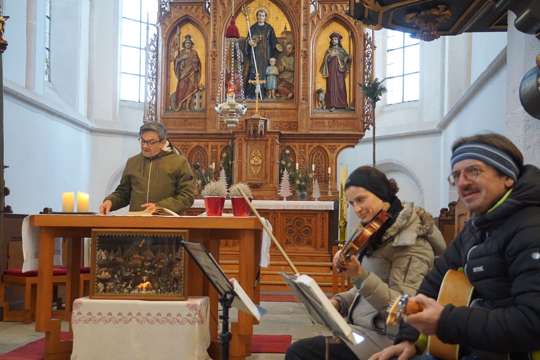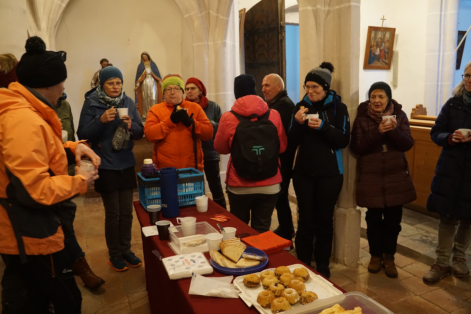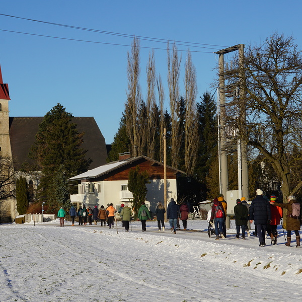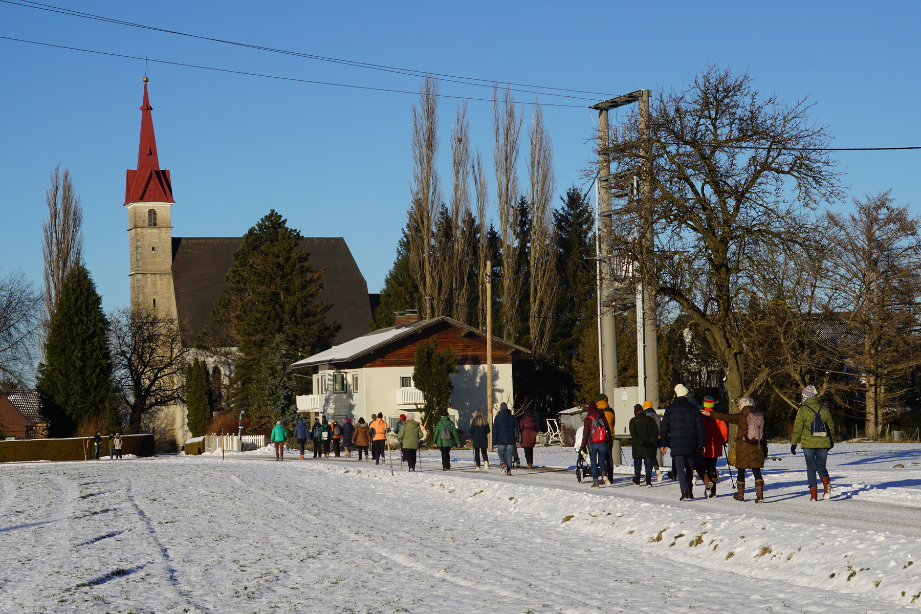 Bis Anfang des 20. Jh. war es Tradition, dass am Meinradstag von Viechtwang nach Heiligenleithen eine Wallfahrt stattfand. Dieser vergessenen Tradition folgend, lud das KBW Viechtwang am 20.01. zur Pilgerwanderung nach Heiligenleithen. Bei strahlend schönem Wetter machte sich eine Gruppe von etwa 30 Personen auf den Weg. In Heiligenleithen erwartete Harald Luckerbauer die Pilgerschar und gestaltete eine Andacht. Weiters erklärte er die Kirche und die angebaute Kapelle Einsiedling. Zum Abschluss gab es noch wärmenden Tee und kleine Köstlichkeiten.
