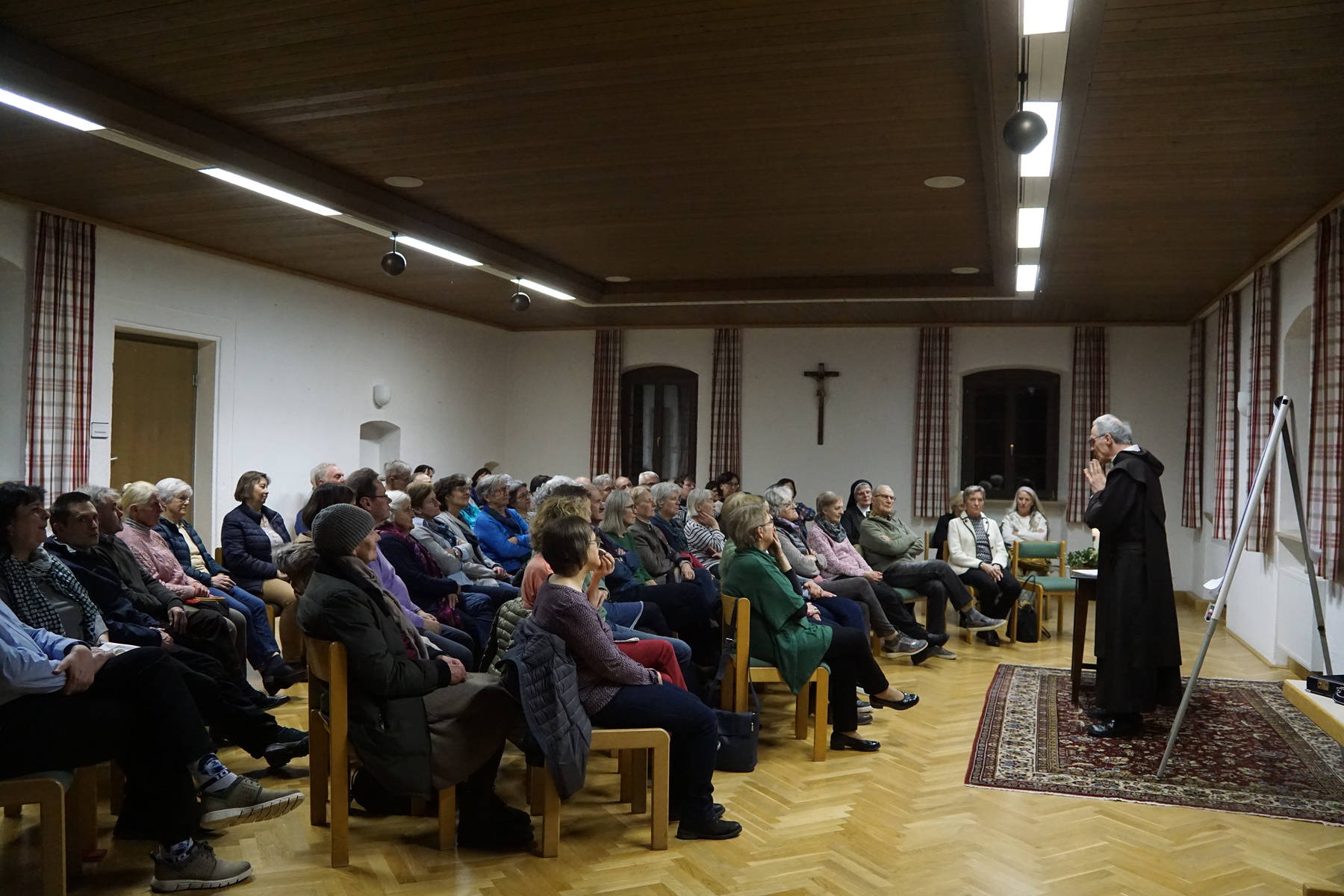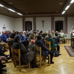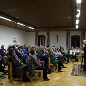 Viele Personen folgten der Einladung in den Kaplanstock. Schwungvoll und humorvoll gestaltete P. Paul Weingartner seine Ausführungen und stellte seine Intention grafisch dar. Er regte zum Nachdenken, Innehalten und In-Sich Gehen an und stellte kurz sein neues Buch vor. Bei Getränken und einer kleinen Jause klang der Abend aus.