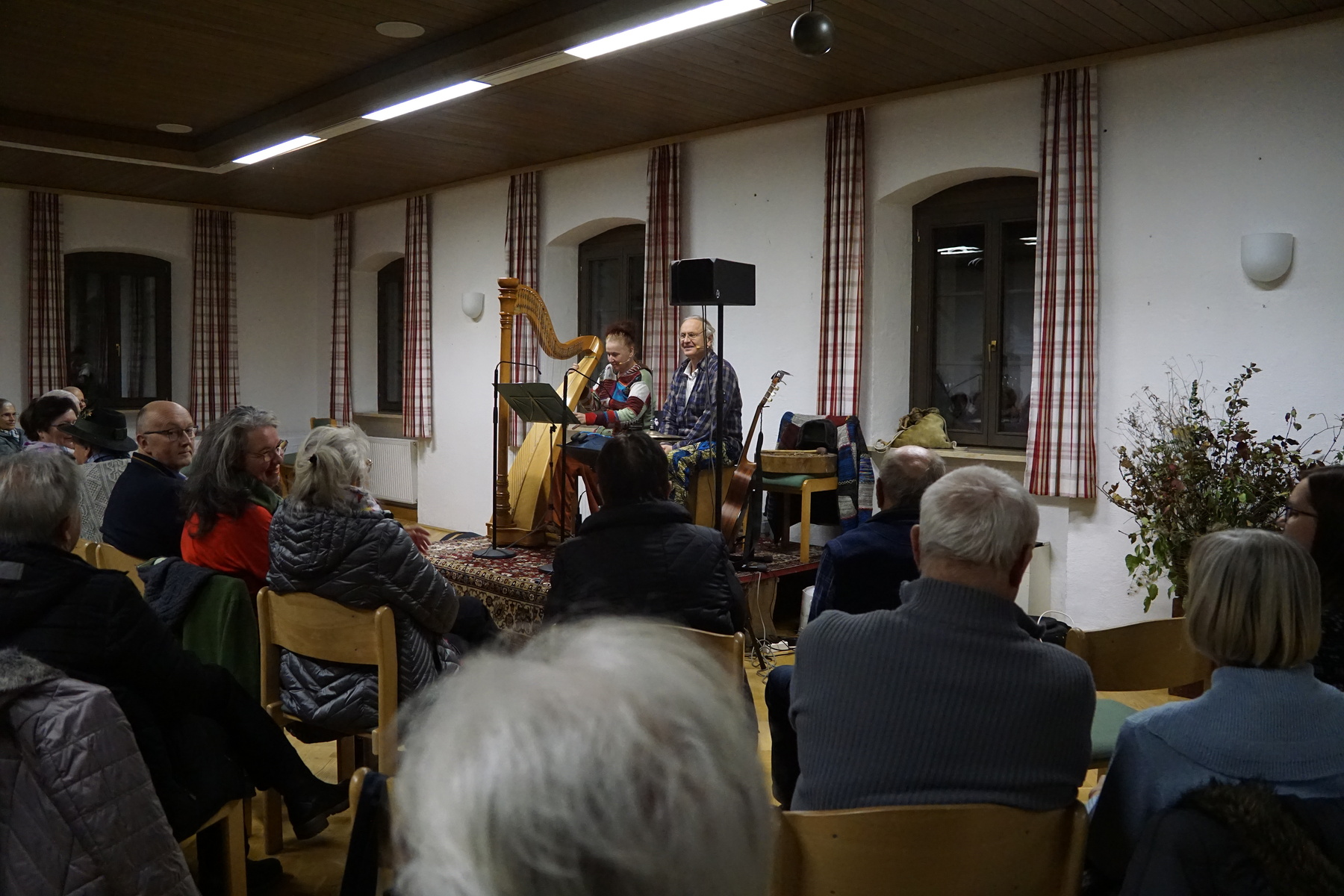 Das KBW Viechtwang lud zu einer Geschichte für Erwachsene ein. Cornelia Kirsch und Gerhard Schilcher nahmen die Besucher in Gedanken mit nach Schweden zu der Geschichte über eine liebenswerte Harfenistin und einem ruhigen Orgelstimmer. Ihre Erzählung untermalten sie mit ihren Instrumenten und ihrem Gesang. Die kurzweilige herzerwärmende Geschichte mit dem tieferen Sinn passte perfekt in die Vorweihnachstzeit. Der schöne Abend klang gemütlich bei Tee, Getränken und Kuchen aus.