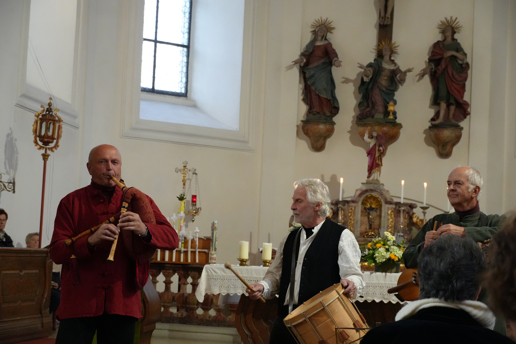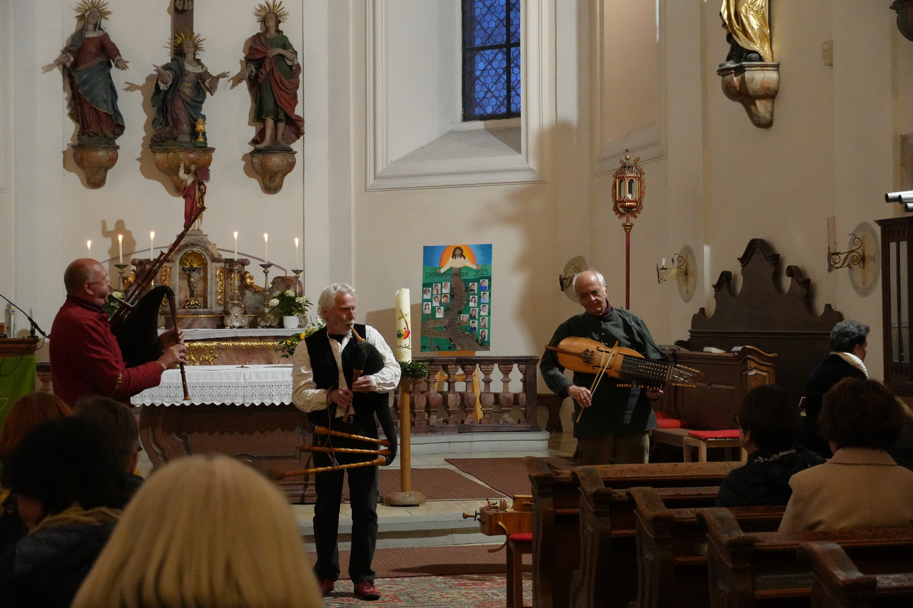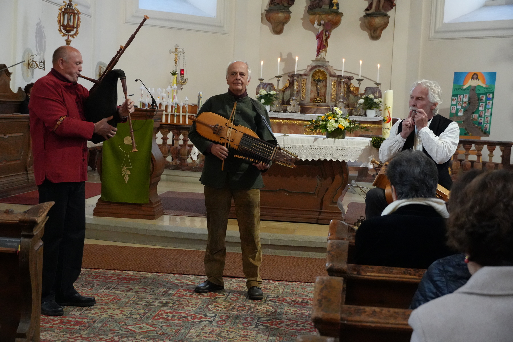 Am 23.5. lud das KBW Viechtwang zum Konzert "Dudelsack trifft Orgel" im Rahmen der langen Nacht der Kirchen ein. Almtal Bordun (Franz Lacherstorfer, Hannes Anzengruber, Franz Bernegger) und die Organistin Maria Pap-Kern boten ein abwechslungsreiches Musik - Programm. Viele Instrumente - verschiedene Dudelsäcke, Drehleier, Nickelharpa, etc. kamen zum Einsatz und verschmolzen mit den Orgelklängen. Vor jedem Stück erfolgte eine kurze Erklärung. Das KBW Team rundete den Abend mit Kurzgeschichten zwischen den Musikblöcken ab. Der Abend bot eine unvergessliche, einzigartige klangliche Vielfalt.