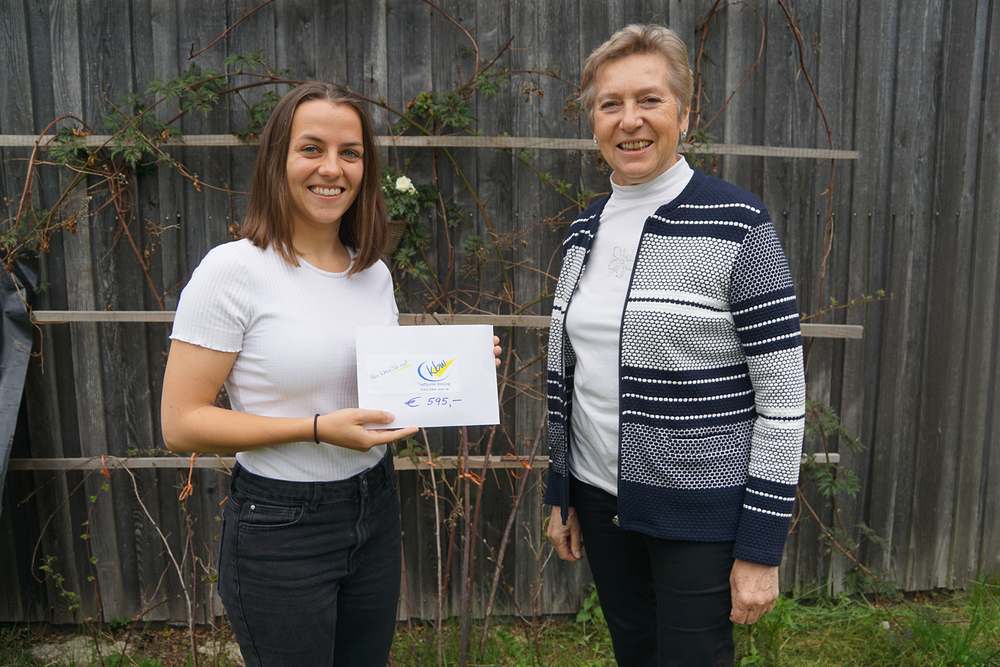 Die, beim Vortrag gesammelten, Freiwilligen Spenden, übermittelt Evelyn ihrem Herzensprojekt, dem Jugendzentrum Yaounde der Don Bosco Schwestern in Kamerun.