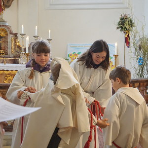 Jonas und Tobias wurden von den älteren Ministranten eingekleidet und durften das erste Mal ministrieren.