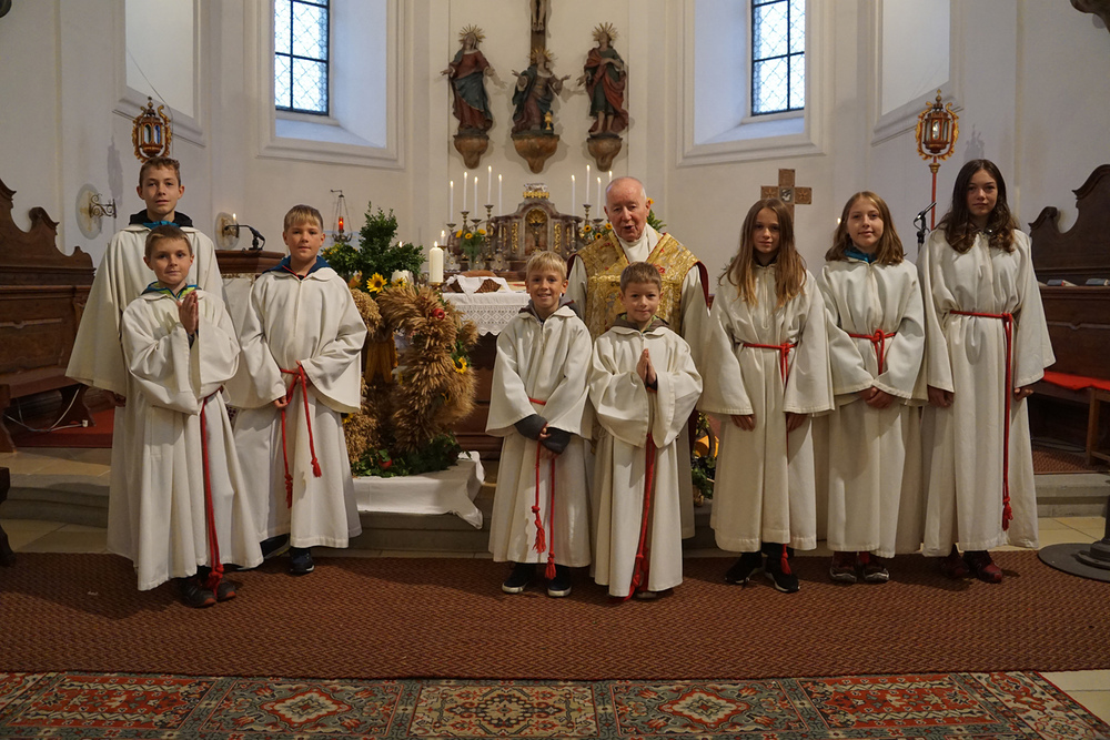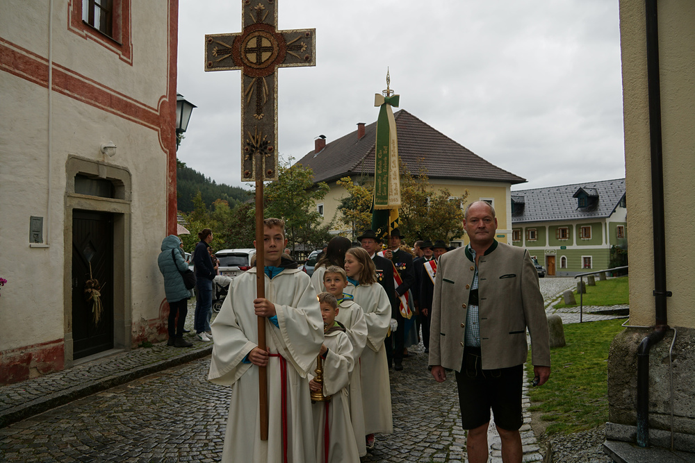 Am 2. Oktober feierten wir das Erntedankfest. Wegen des Regens war diesmal die Prozession vom Moar nicht möglich. Trotzdem wurde die Erntekrone - gebunden von der Landjugend - in einem kurzen Festzug in die Kirche getragen. Der Bertholdschor gestaltete musikalisch die Messe. Im Anschluss daran wurde im Kaplanstock Stadl beim Pfarrfest weiter gefeiert. Trotz kühler Temperaturen und schlechtem Wetter sind viele der Einladung gefolgt und genossen den Frühschoppen.