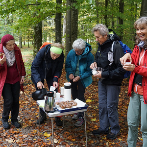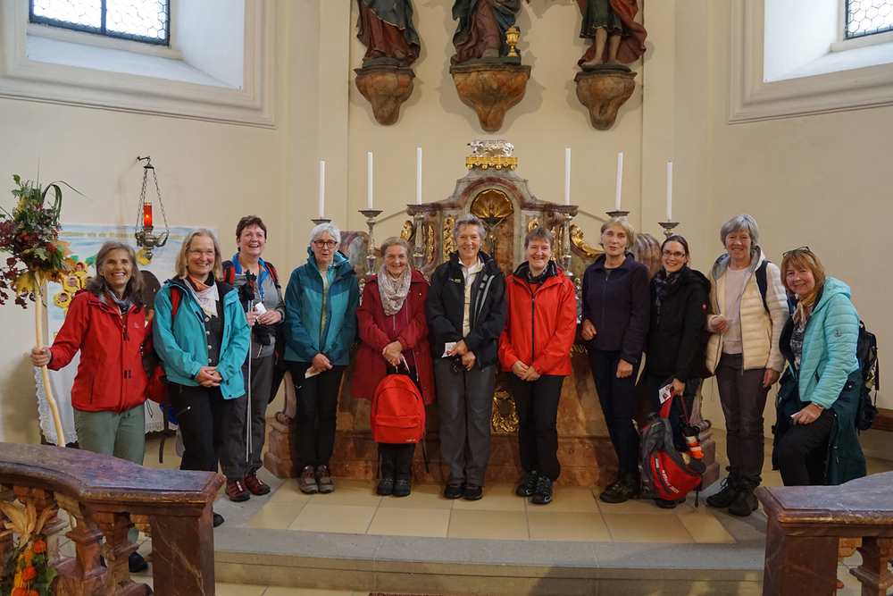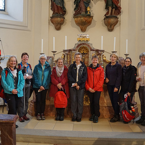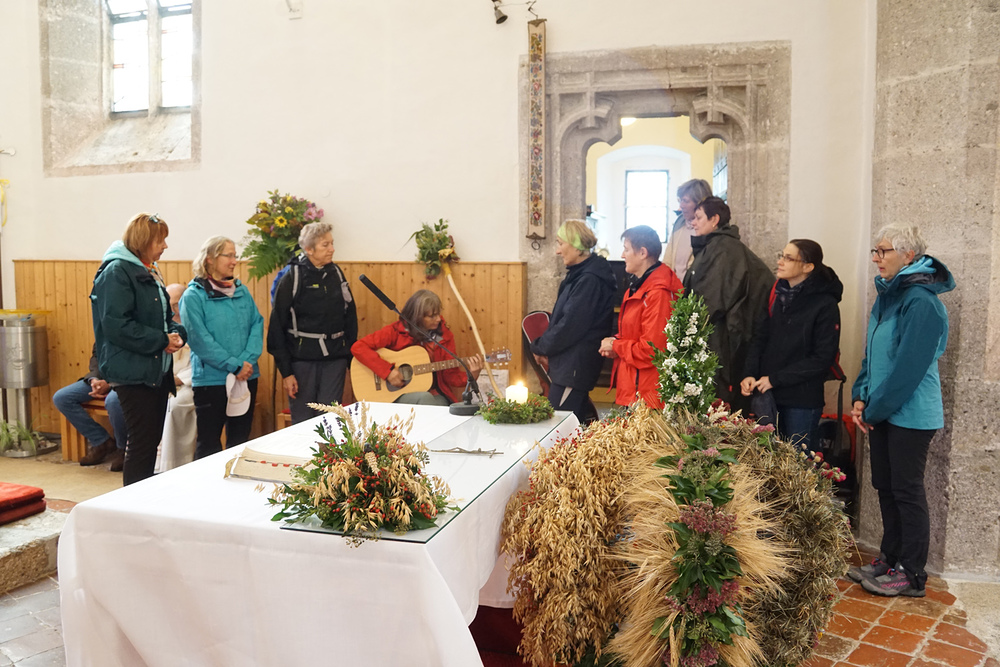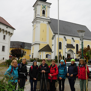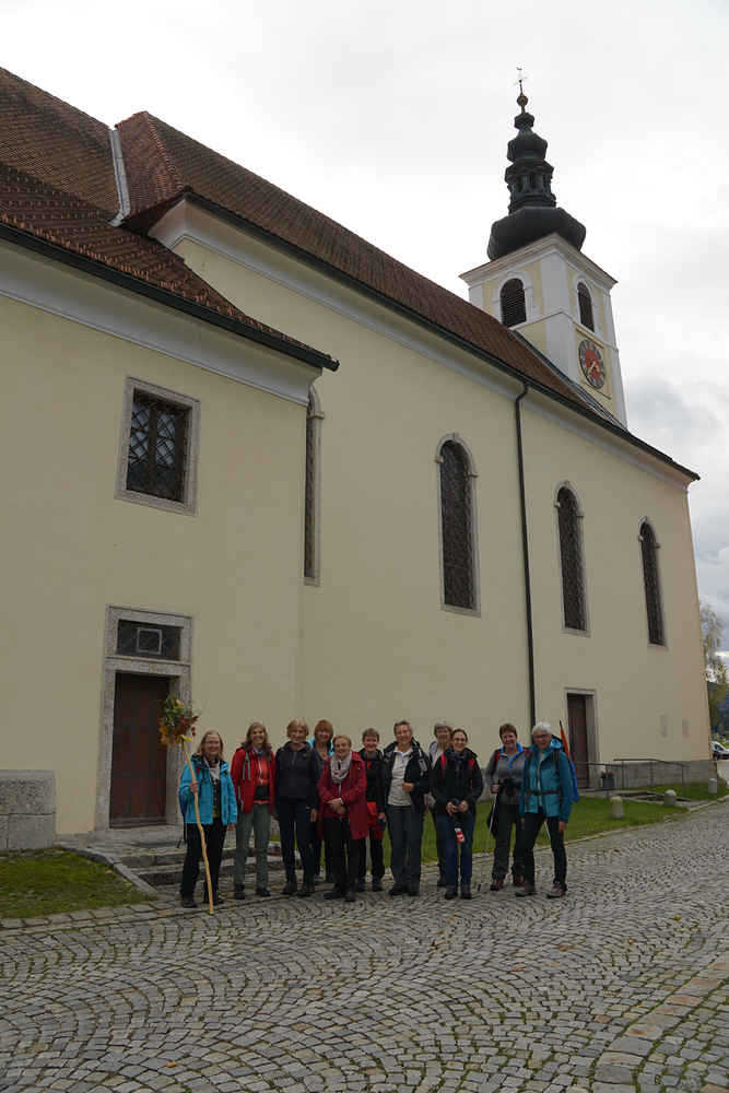 Das KBW Team Viechtwang lud am 15.10. zum gemeinsamen Pilgern mit Pilgerbegleiterin Sieglinde Holzmannhofer ein. Start war die Pfarrkirche Vorchdorf, wo in der Franziskuskapelle der Pilgerstab gesegnet wurde. Dann ging es nach Einsiedling. Nach einer kurzen Andacht in der Kirche und einer geschichtlichen Erklärung pilgerte die Gruppe am Almuferweg weiter. Auch eine kurze Jausen- und Kaffeepause wurde eingelegt. Während des Weges "wuchs" der Pilgerstab, den jeder durfte Schönes aus der Natur dazustecken. Am Nachmittag erreichte die Schar das Ziel, die Parrkirche Viechtwang, in der ein kurzer besinnlicher Abschluss durch Sieglinde gemacht wurde. Daraufhin stärkten sich die Pilger bei Gulasch und Suppe.