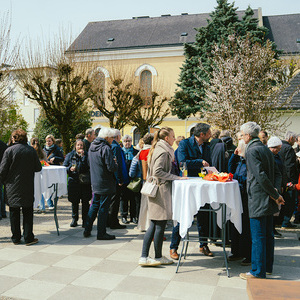 Es war schön, dass im Anschluss an den Gottesdienst viele Menschen im kleinen Park hinter der Stadtpfarrkirche bei einer Agape noch ein wenig weitergefeiert haben.