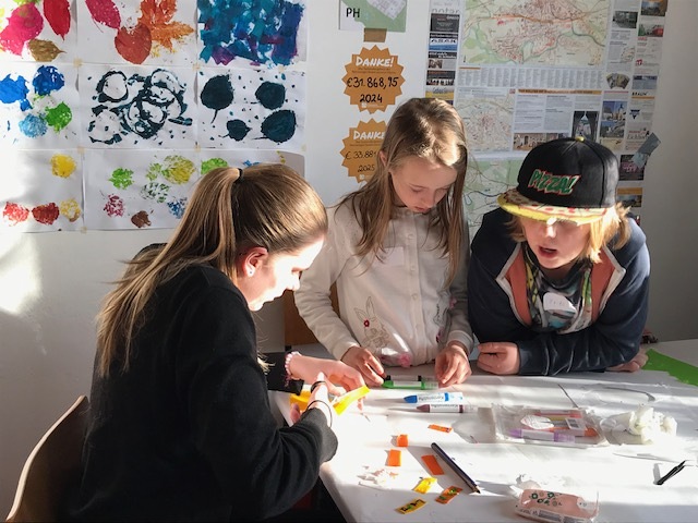 Am ersten Workshopnachmittag wurde u.a. eine Gruppenkerze verziert, der Gottesdienstablauf besprochen und Verschiedenstes über Zeichen der Erstkommunion gelernt. Besonders im Vordergrund standen dabei die Themen "Wasser" und "Brot". Kleine Weckerl wurden gebacken, Wasser geschöpft und Geschichten erzählt.
