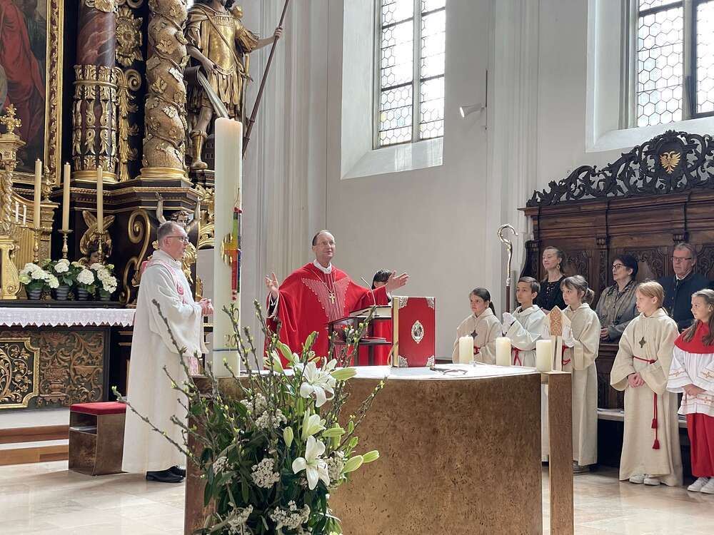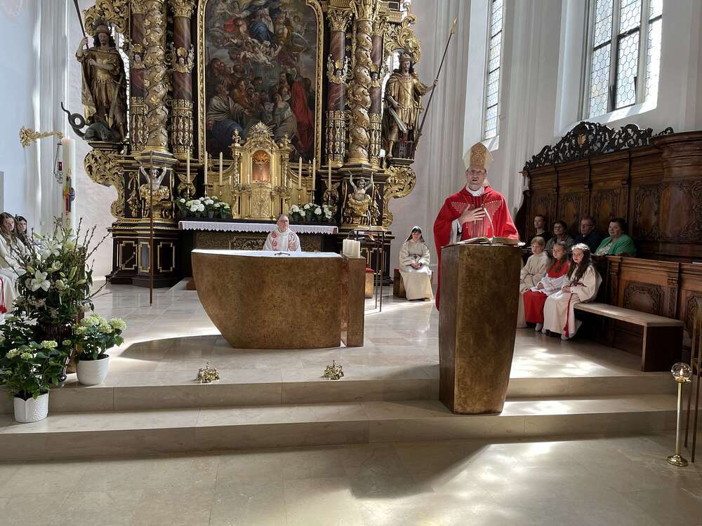 Höhepunkt war natürlich die Firmung selbst, wobei die Jugendlichen gemeinsam mit ihren Patinnen und Paten vor den Bischof traten und mit Chrisam gesalbt wurden. Anschließend spendete die ganze Gemeinde den Neugefirmten einen Riesenapplaus.