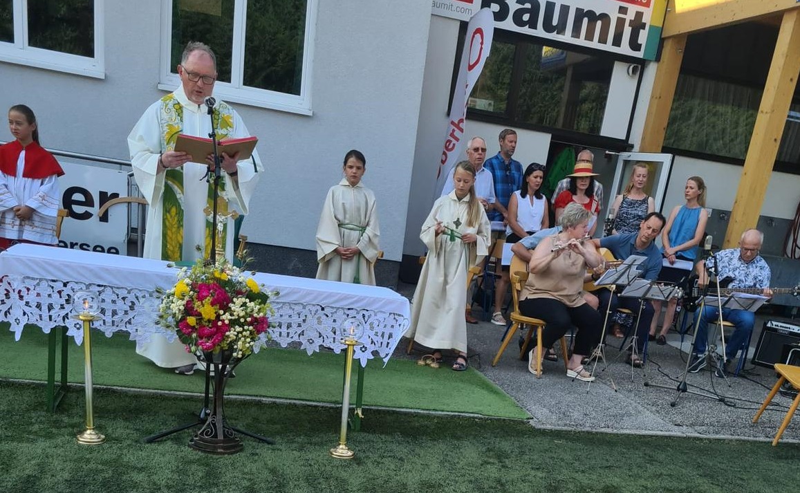 Am ersten Sonntag der Sommerferien ging es ins Fußballstadion, wo mit der Fußballjugend (und auch mit vielen Seniorenkickern) der Gottesdienst unter freiem Himmel direkt am Spielfeld gefeiert wurde. Viele Kinder kamen sogar in ihren Trikots und Dressen und trugen zum Gottesdienst passende Fürbitten bei. In Vöcklamarkt wird Fußballbegeisterung sehr groß geschrieben - noch wichtiger als Tore und Siege sind aber Teamgeist, Zusammenhalt und gegenseitige Unterstützung - und dazu ist Jesus ein sehr gutes Vorbild.