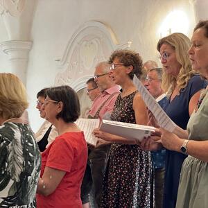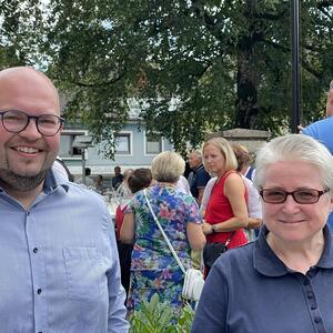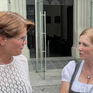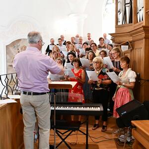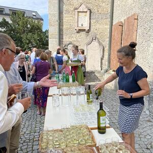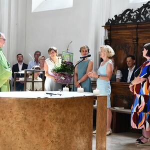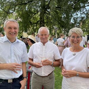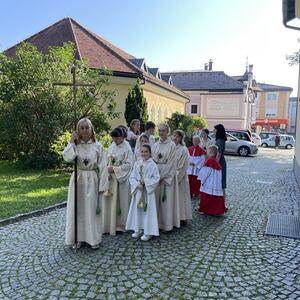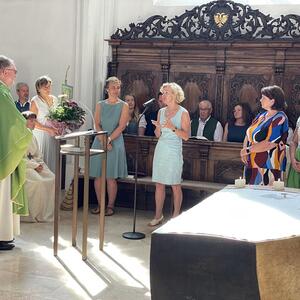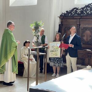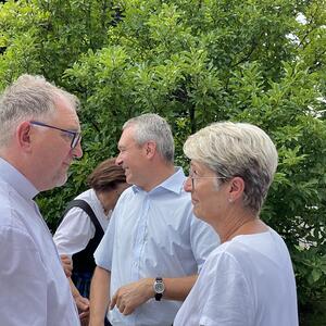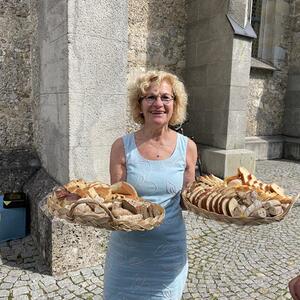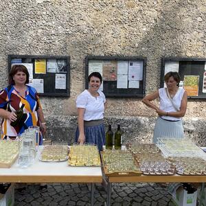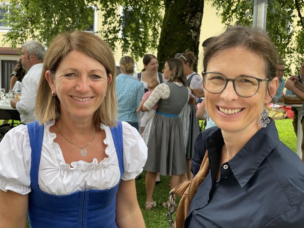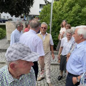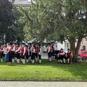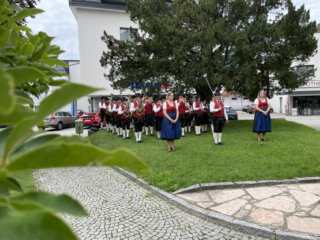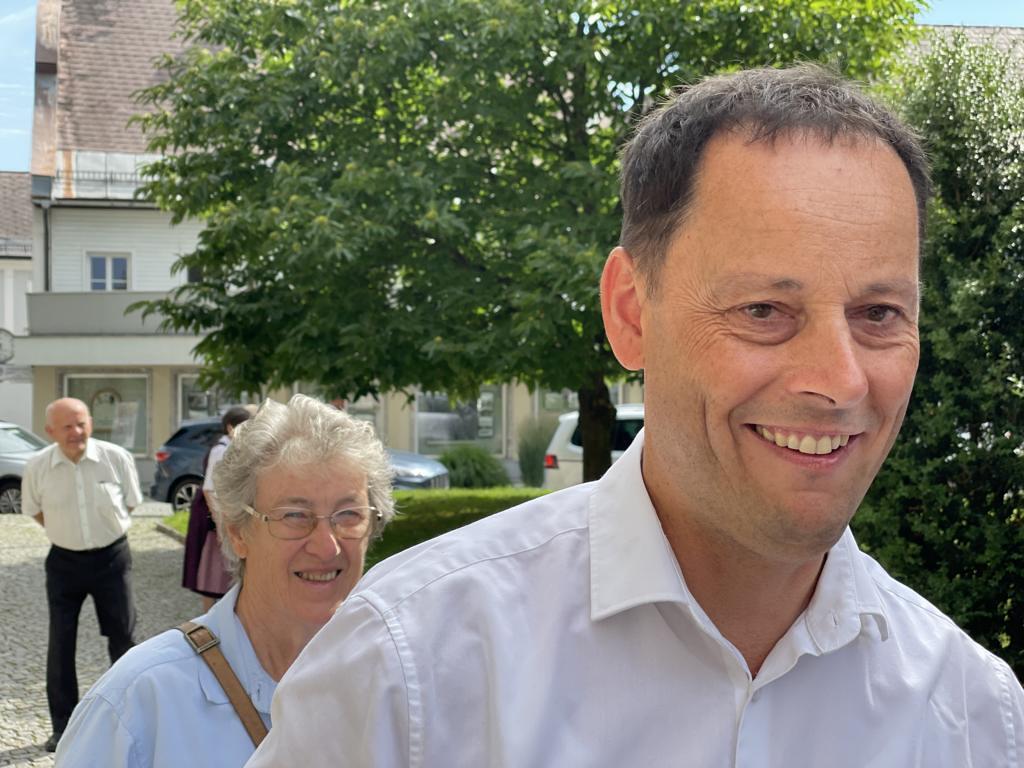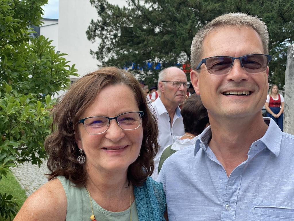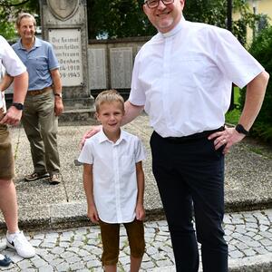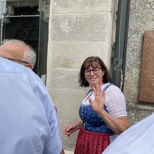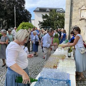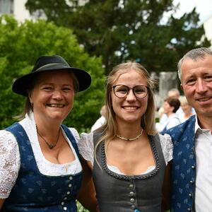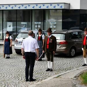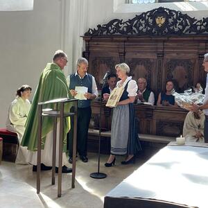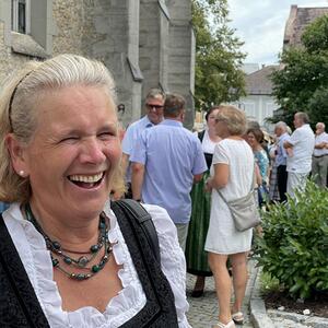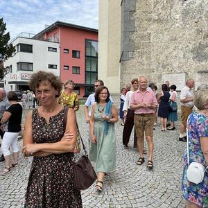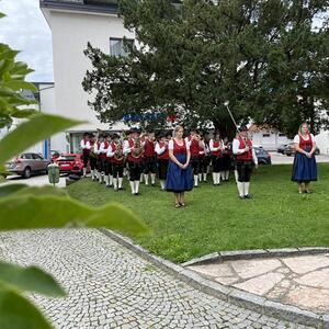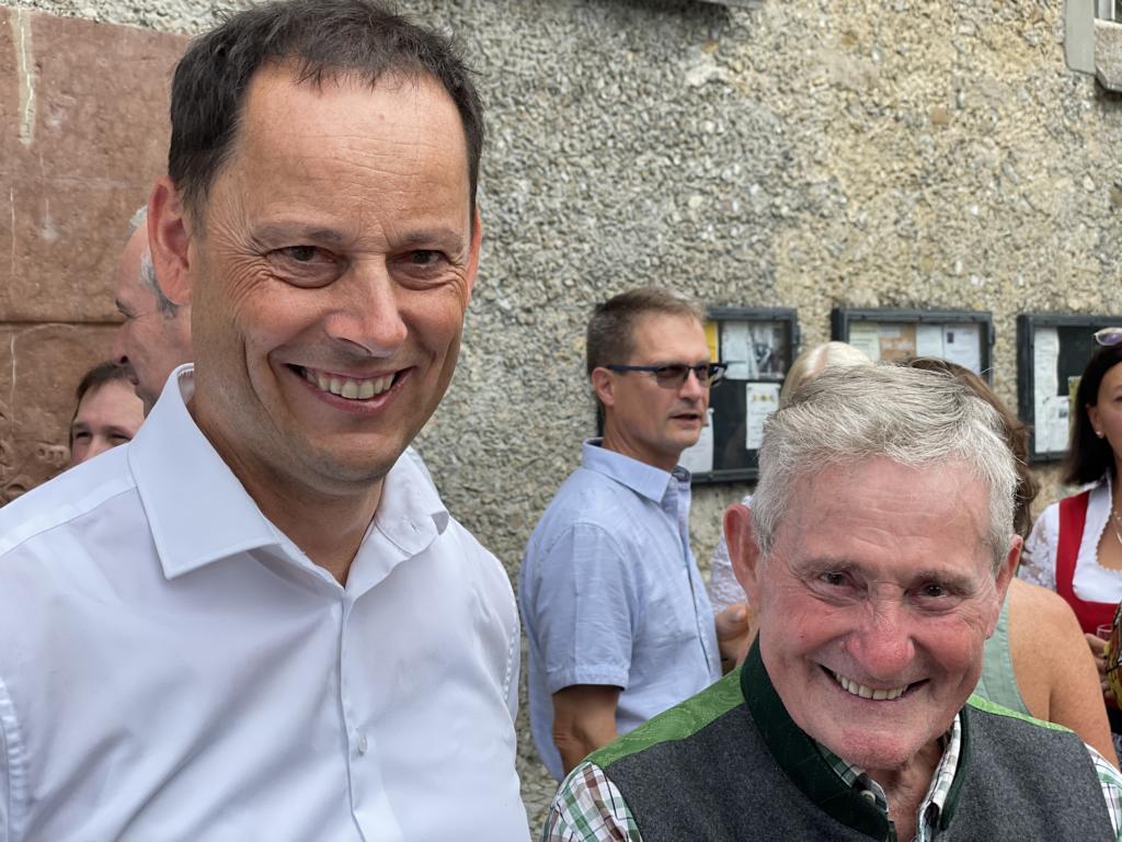 Nach dem Gottesdienst hatten noch alle vor der Kirche bei einer Agape Gelegenheit, auf Wiedersehen und Adieu zu sagen. Dazu kamen auch die Marktmusikkapelle, die Prangerschützen mit einem Ehrensalut, die Landjugend, Abordnungen der Goldhaubenfrauen, der Pensionist/-innen und der Feuerwehr und ganz viele Vöcklamarkter/-innen und Pfaffinger/-innen. Allen war es ein wirkliches Anliegen, dem verehrten Herrn Pfarrer Dank auszudrücken und für die Zukunft alles Gute zu wünschen.