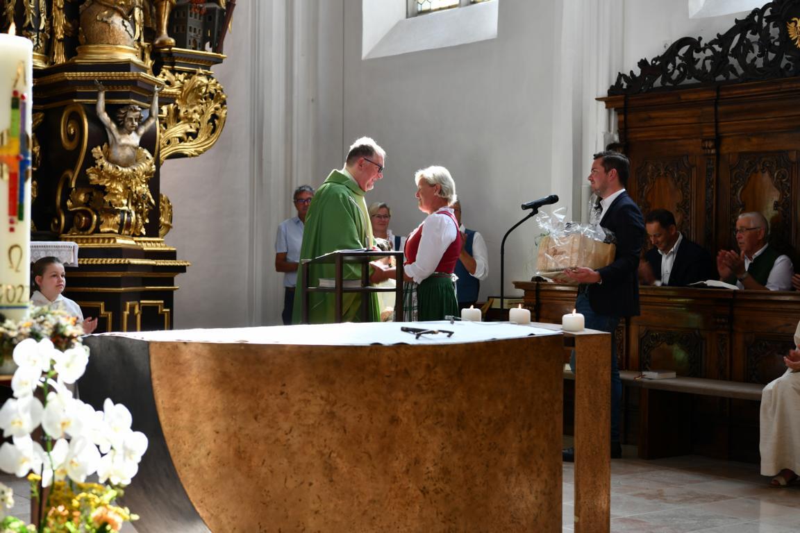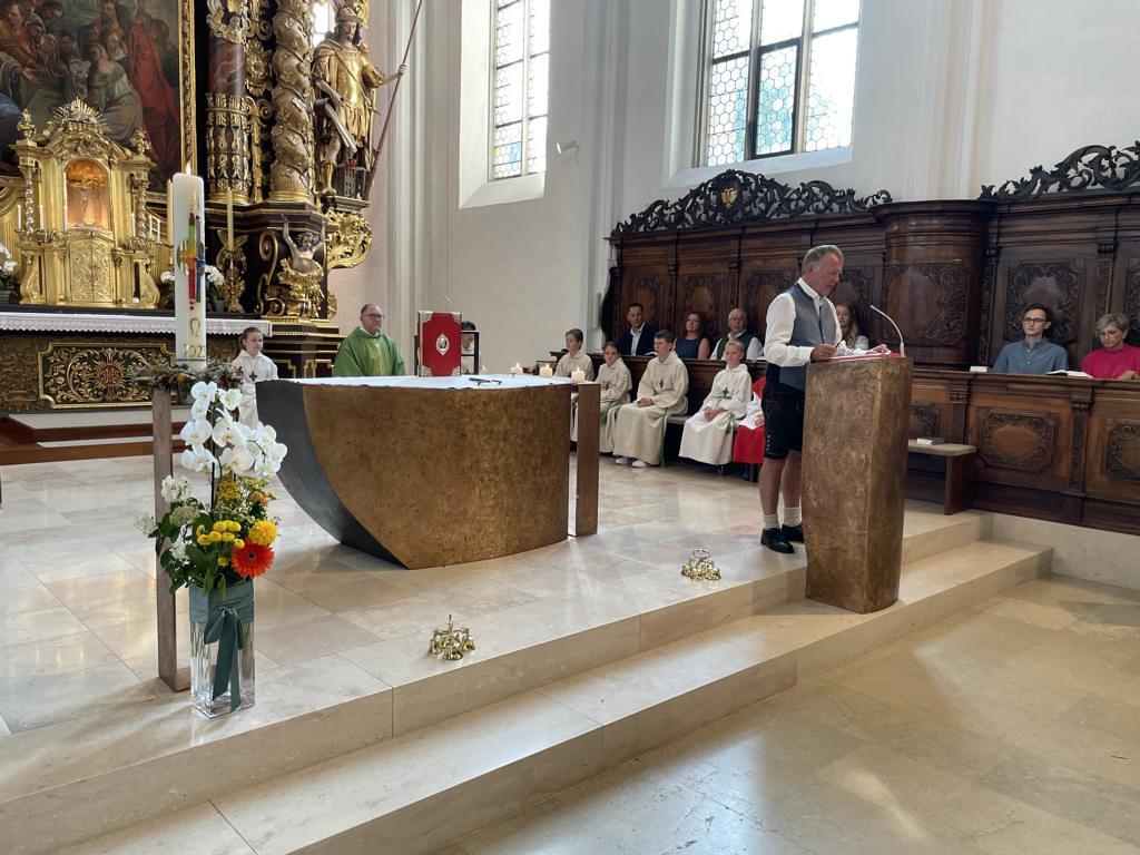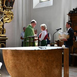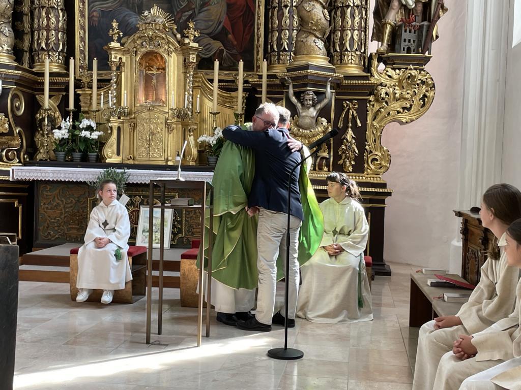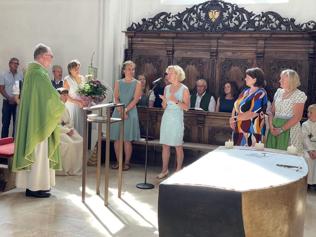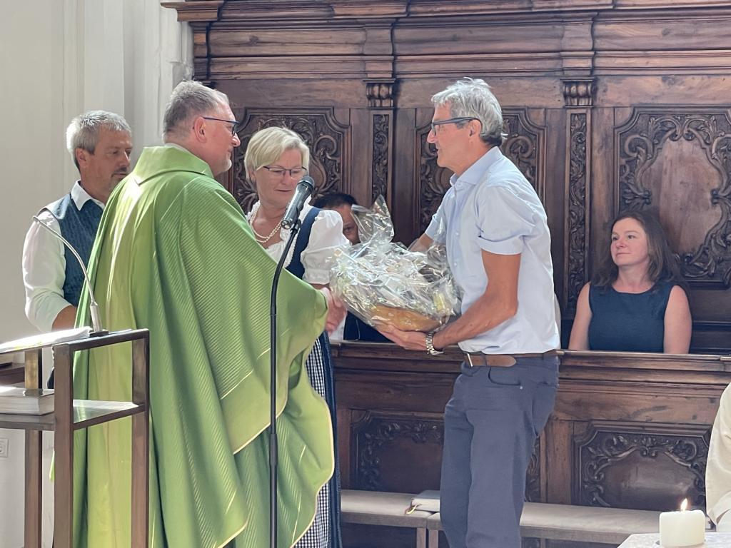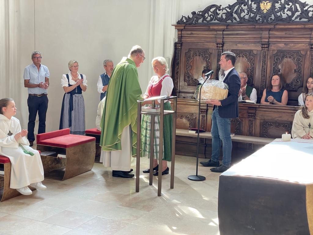 Am 20. August versammelten sich viele Menschen in der Pfarrkirche zum Dankgottesdienst anlässlich des Abschieds von Pfarrer Wolfgang Schnölzer aus Vöcklamarkt. Es war eine berührende Feier mit wunderbaren Gesängen des Kirchenchors und schönen Abschiedsworten von Pfarrer Wolfgang. Am Ende sprachen der PGR Obmann, die Bürgermeister/-in der beiden politischen Gemeinden Vöcklamarkt und Pfaffing, eine Abordnung der KFB Damen und die Leiterinnen der Schar der Ministranten und sagten dem geschätzten Pfarrer Danke für sein Da-sein in Vöcklamarkt und das äußerst viele Gute, das er hier bei uns bewirken konnte.