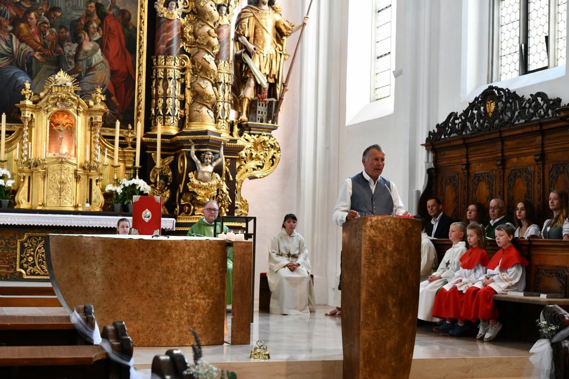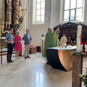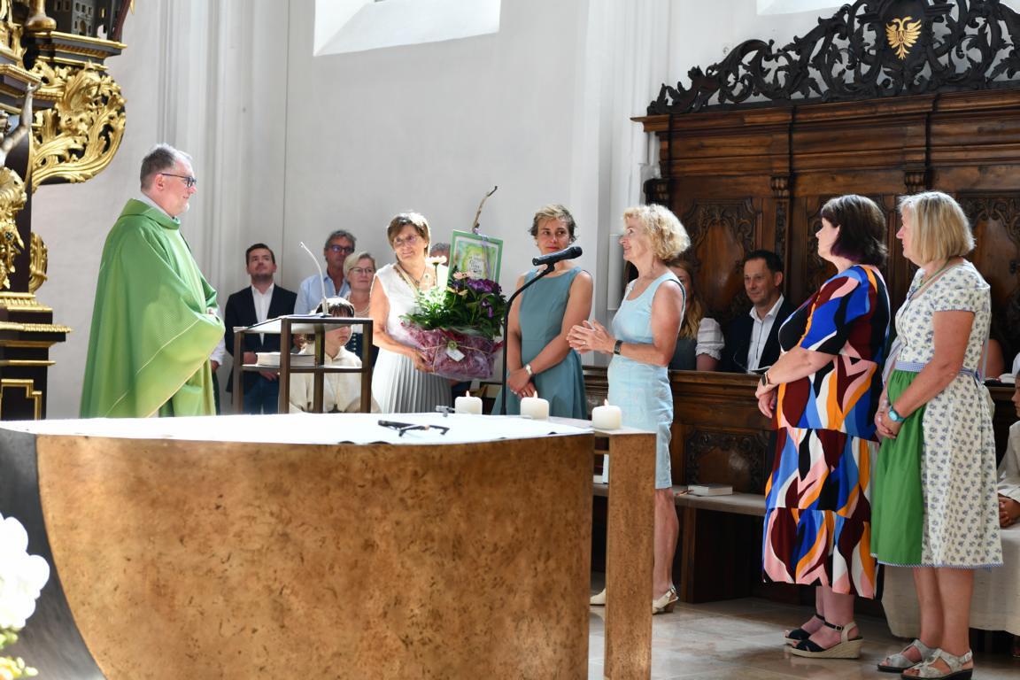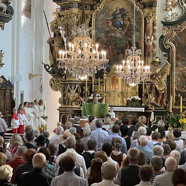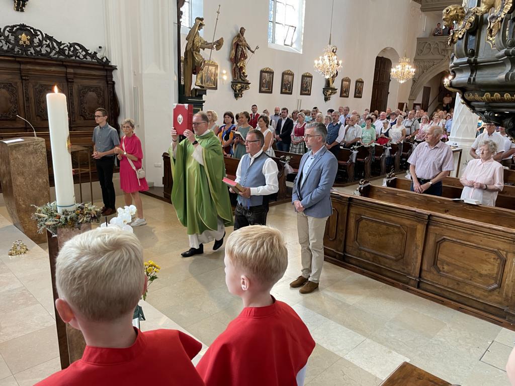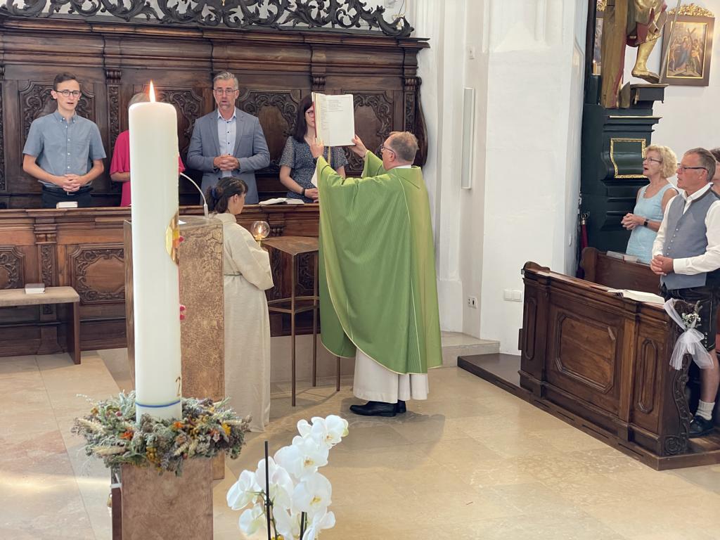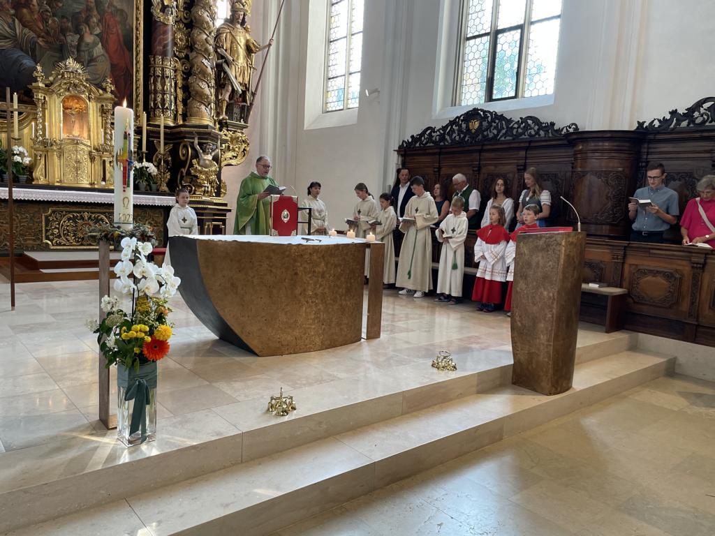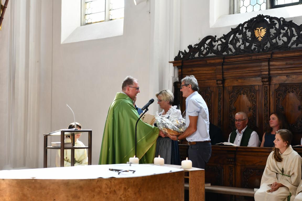 Am 20. August versammelten sich viele Menschen in der Pfarrkirche zum Dankgottesdienst anlässlich des Abschieds von Pfarrer Wolfgang Schnölzer aus Vöcklamarkt. Es war eine berührende Feier mit wunderbaren Gesängen des Kirchenchors und schönen Abschiedsworten von Pfarrer Wolfgang. Am Ende sprachen der PGR Obmann, die Bürgermeister/-in der beiden politischen Gemeinden Vöcklamarkt und Pfaffing, eine Abordnung der KFB Damen und die Leiterinnen der Schar der Ministranten und sagten dem geschätzten Pfarrer Danke für sein Da-sein in Vöcklamarkt und das äußerst viele Gute, das er hier bei uns bewirken konnte.