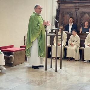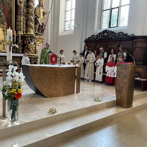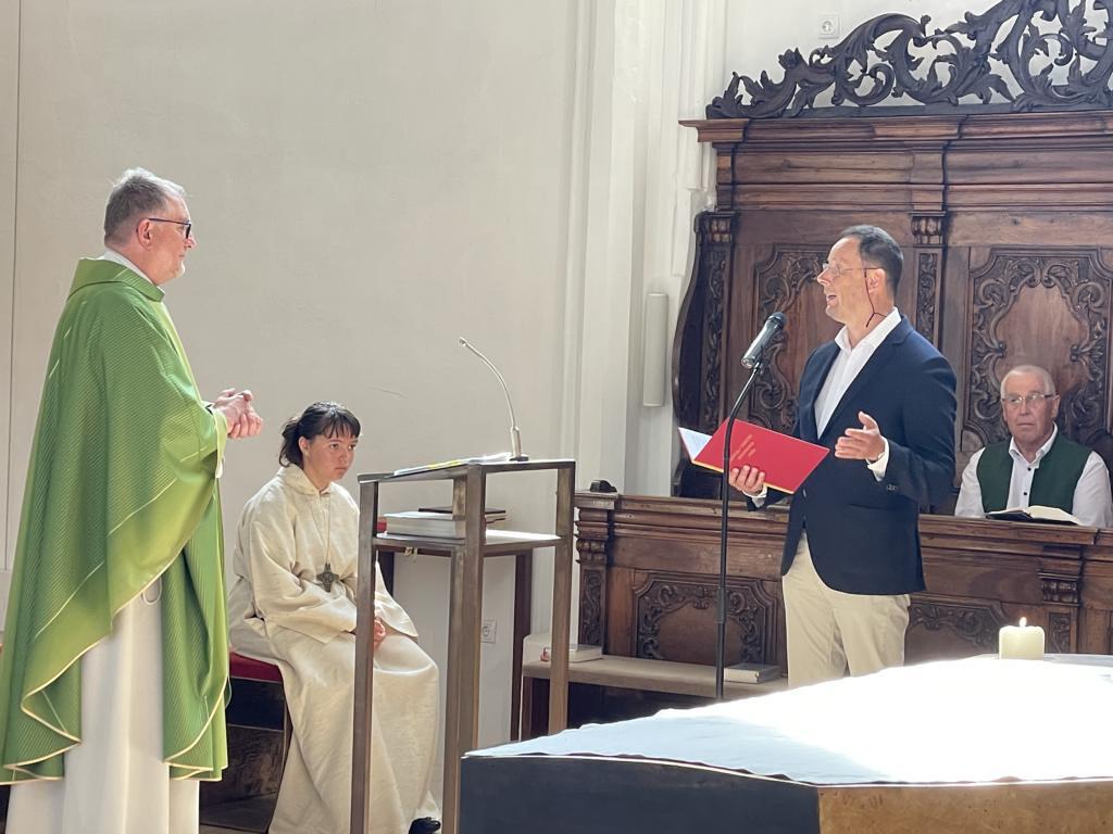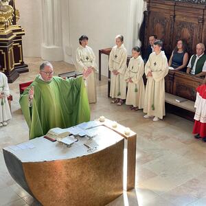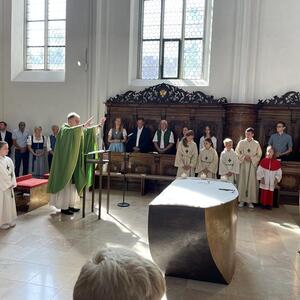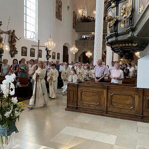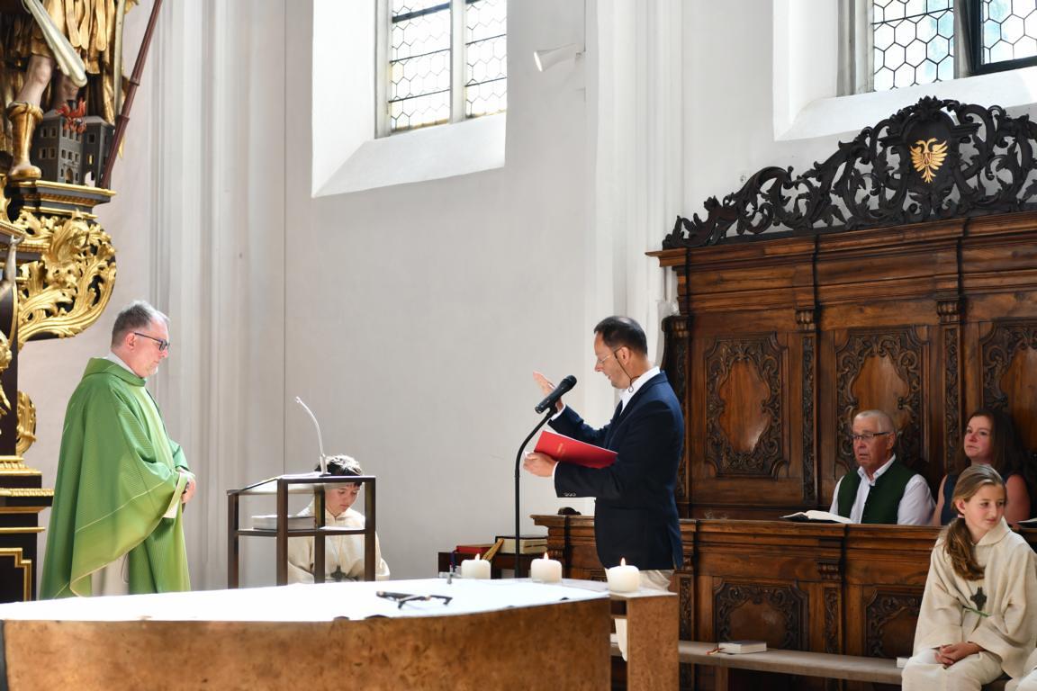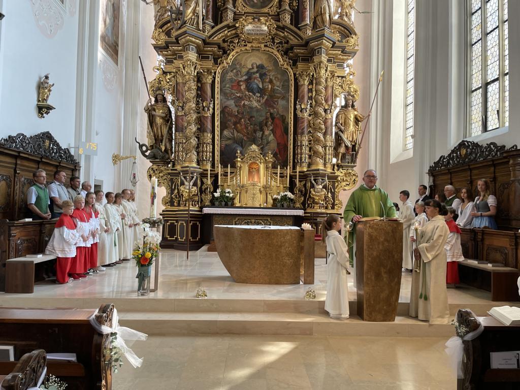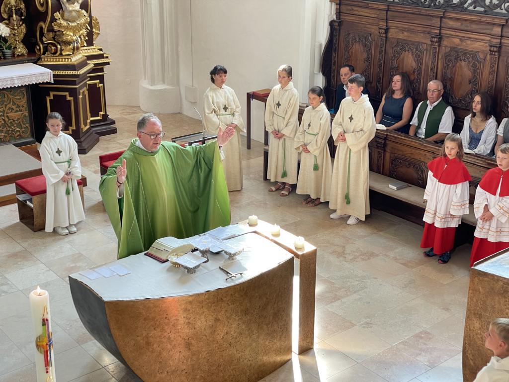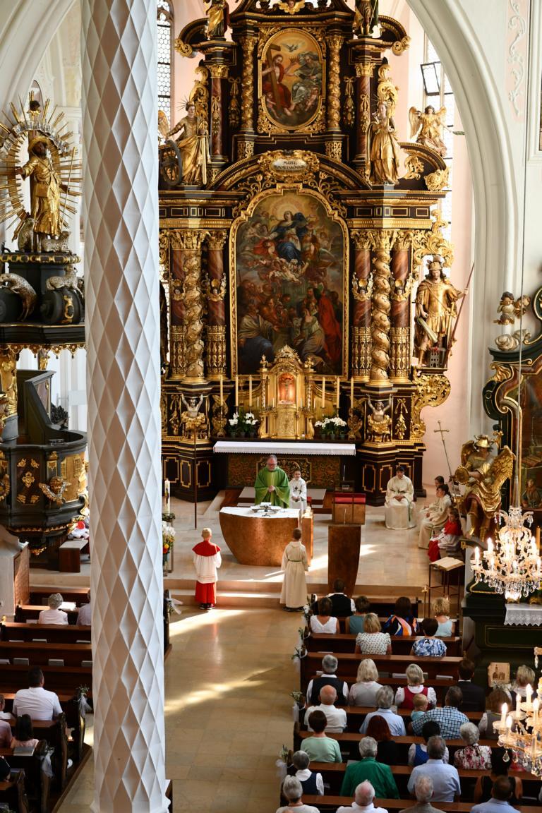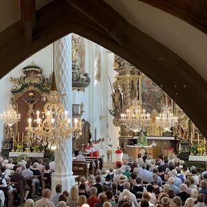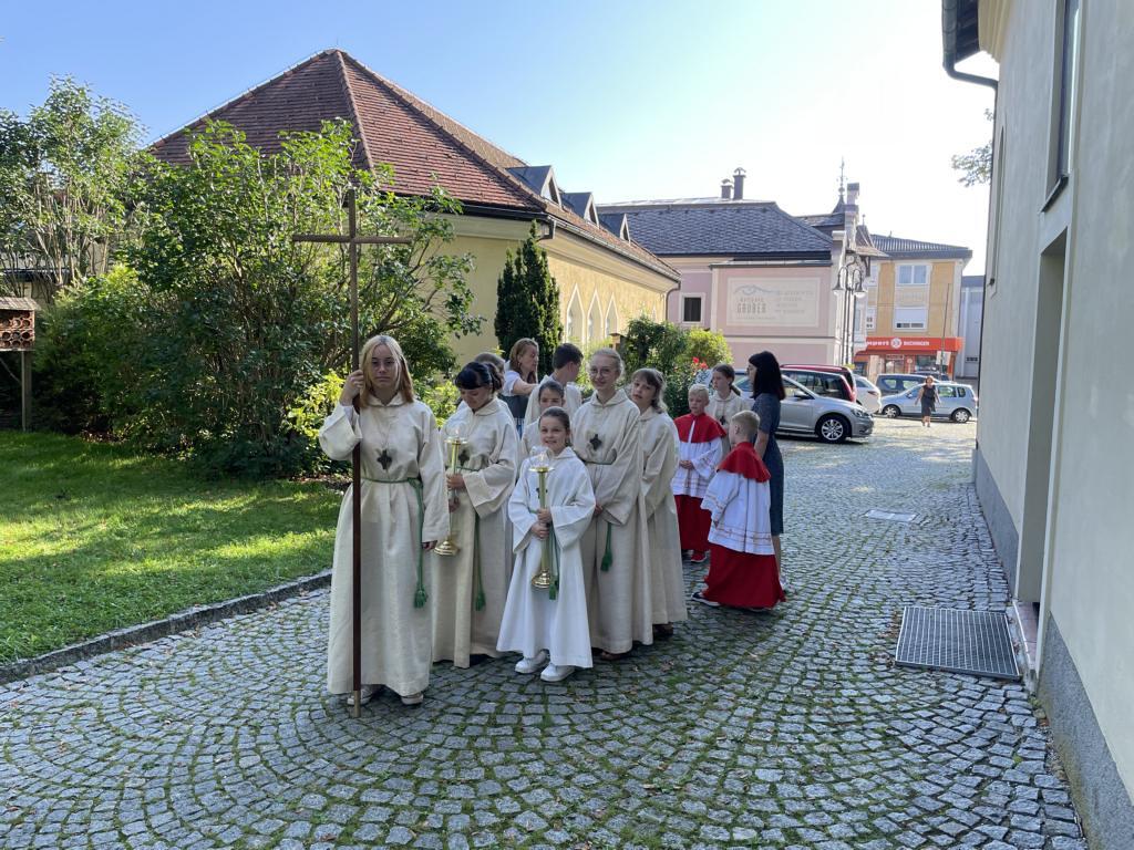 Am 20. August versammelten sich viele Menschen in der Pfarrkirche zum Dankgottesdienst anlässlich des Abschieds von Pfarrer Wolfgang Schnölzer aus Vöcklamarkt. Es war eine berührende Feier mit wunderbaren Gesängen des Kirchenchors und schönen Abschiedsworten von Pfarrer Wolfgang. Am Ende sprachen der PGR Obmann, die Bürgermeister/-in der beiden politischen Gemeinden Vöcklamarkt und Pfaffing, eine Abordnung der KFB Damen und die Leiterinnen der Schar der Ministranten und sagten dem geschätzten Pfarrer Danke für sein Da-sein in Vöcklamarkt und das äußerst viele Gute, das er hier bei uns bewirken konnte.