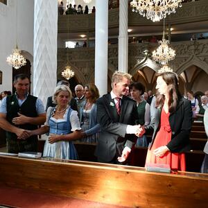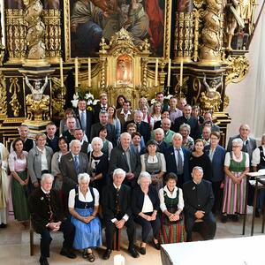 Am 10. September wurde in der Pfarre das Fest der Ehejubilare begangen, zu dem alle Paare eingeladen waren, die auf 25, 40, 50, 60 oder gar 65 gemeinsame Ehejahre zurückblicken. Die Marktmusikkapelle führte den Festzug bei herrlichem Wetter vom Pfarrhof in die Pfarrkirche zum gemeinsamen Gottesdienst mit Paarsegnung durch Pfarrer Johann Greinegger. Die Messe wurde vom Fachteam Partnerschaft und Familie gestaltet und vom Kirchenchor musikalisch begleitet.