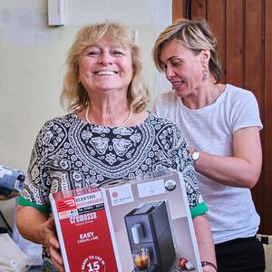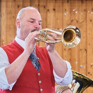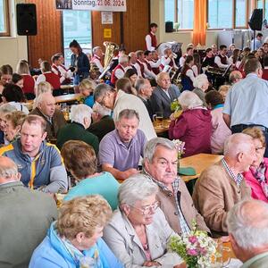 Nach dem Gottesdienst ging es weiter in der Pfaffinger Dorfhalle, wo für eine sehr gute Bewirtung mit köstlichen Speisen und Getränken und bester Unterhaltung durch die Marktmusikkapelle Vöcklamarkt gesorgt war. Es gab auch wieder eine große Tombola mit schönen Preisen und das beliebte Schätzspiel, an dem sich sehr viele Besucher/-innen beteiligten: Wie viele Menschen haben am letzten Zählsonntag (24./25. Februar 2024) einen Gottesdienst in Vöcklamarkt besucht? Der Sieger lag mit seiner Schätzung nur 4 Personen neben der richtigen Antwort 342 - hätten Sie es gewusst?